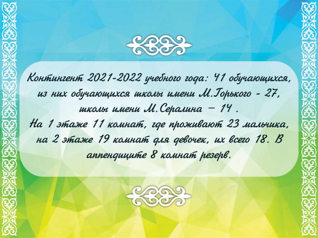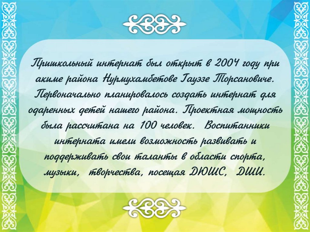 Жас талапь. Пришкольный интернат