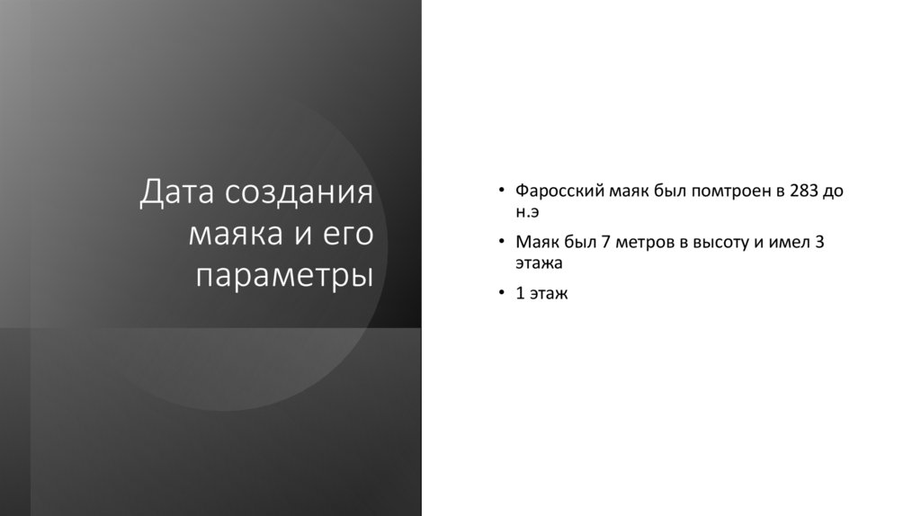• Маяк был 7 метров в высоту и имел 3