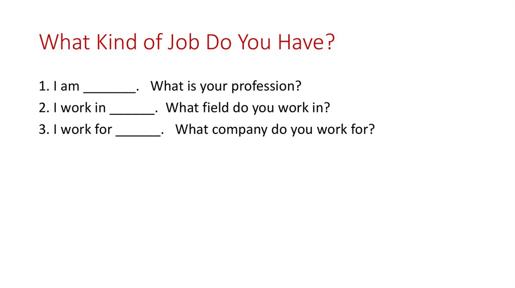 What Kind of Job Do You Have?1. I am _______. What is your profession?