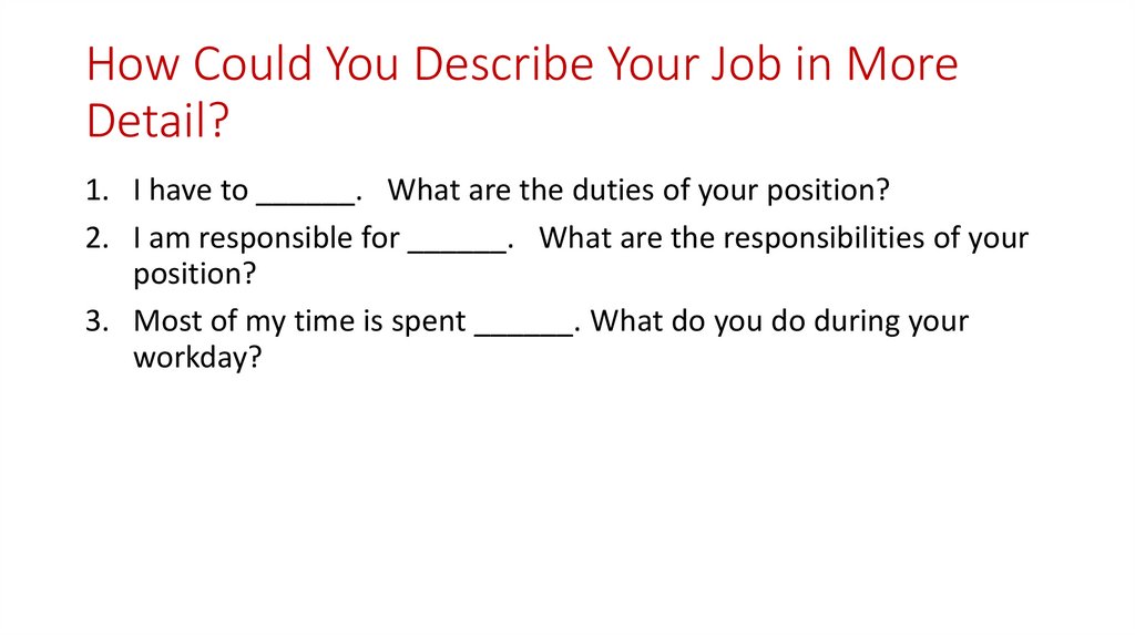 How Could You Describe Your Job in MoreDetail?