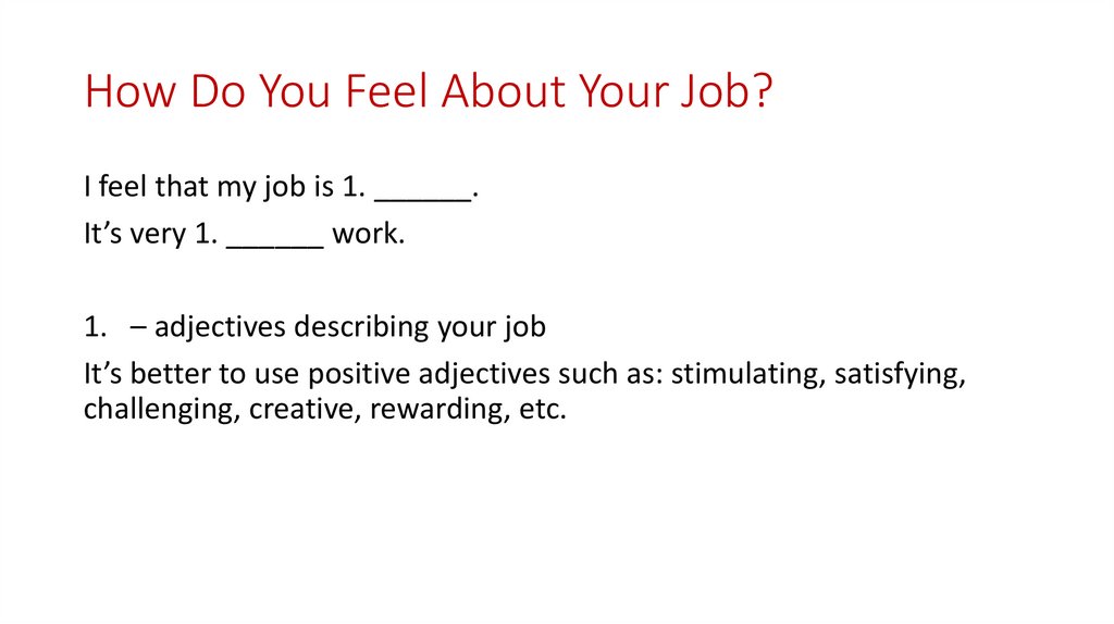 How Do You Feel About Your Job?I feel that my job is 1. ______.