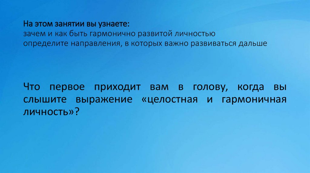 На этом занятии вы узнаете:зачем и как быть гармонично развитой личностью