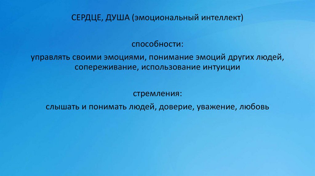 СЕРДЦЕ, ДУША (эмоциональный интеллект)способности: