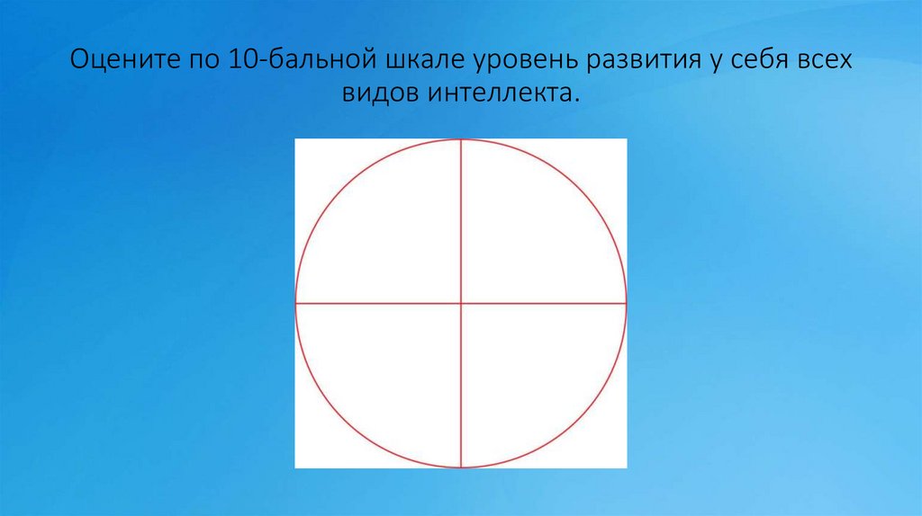 Оцените по 10-бальной шкале уровень развития у себя всехвидов интеллекта.
