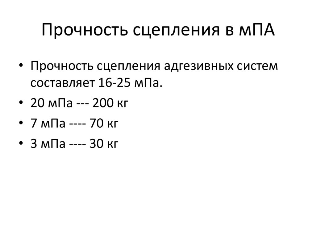 Прочность сцепления в мПА• Прочность сцепления адгезивных систем