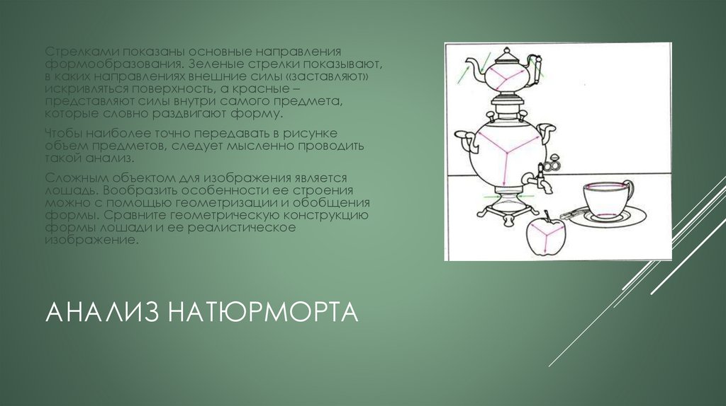 Стрелками показаны основные направленияформообразования. Зеленые стрелки показывают,