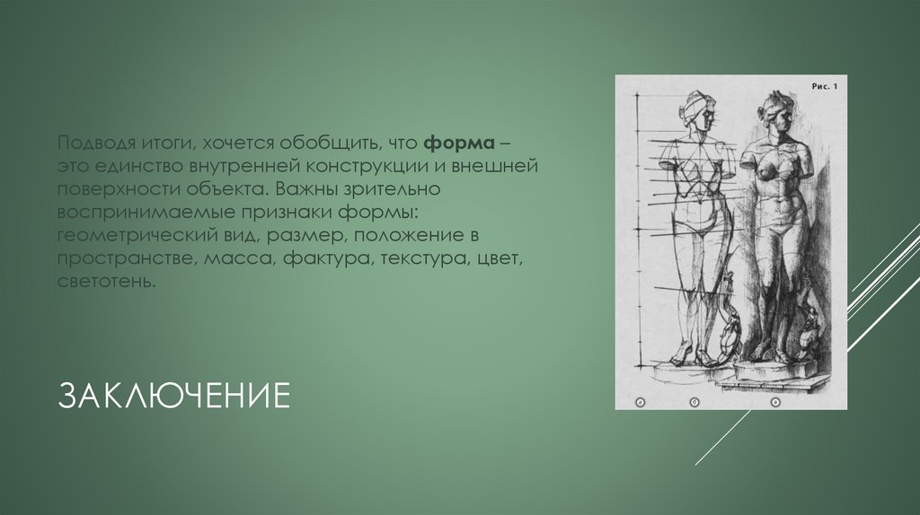 Подводя итоги, хочется обобщить, что форма –это единство внутренней конструкции и внешней