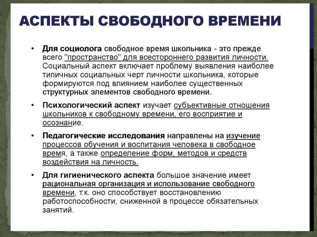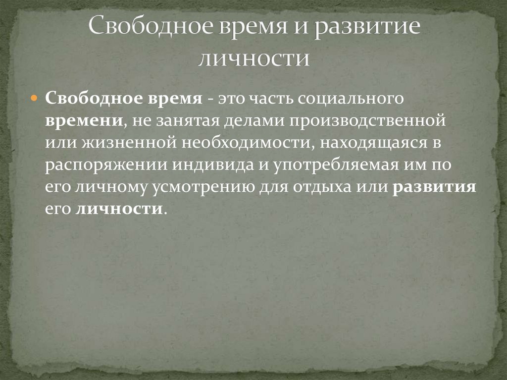 Свободное время - это часть социальноговремени, не занятая делами производственной