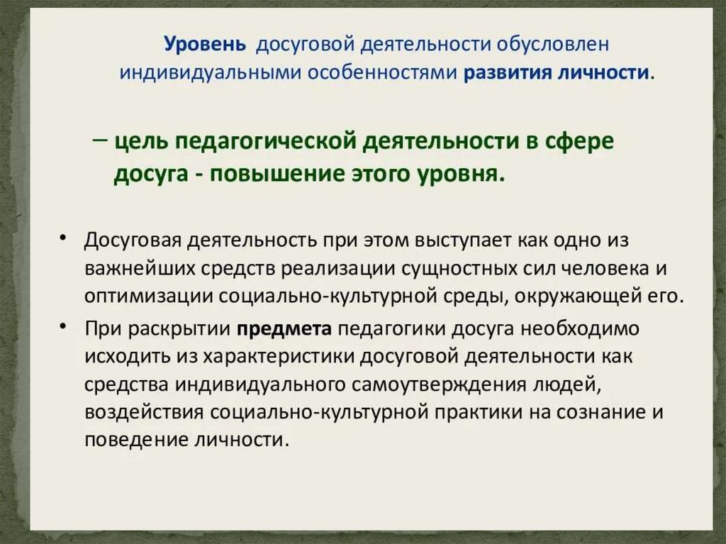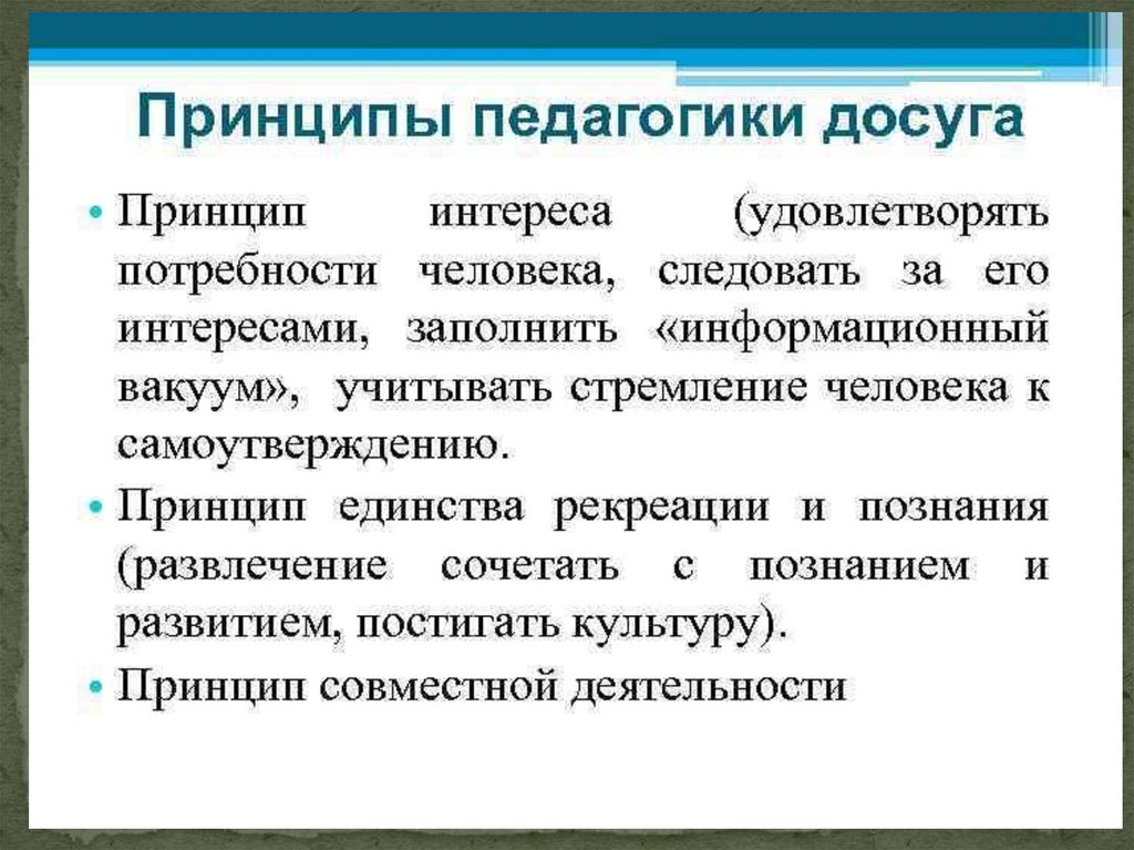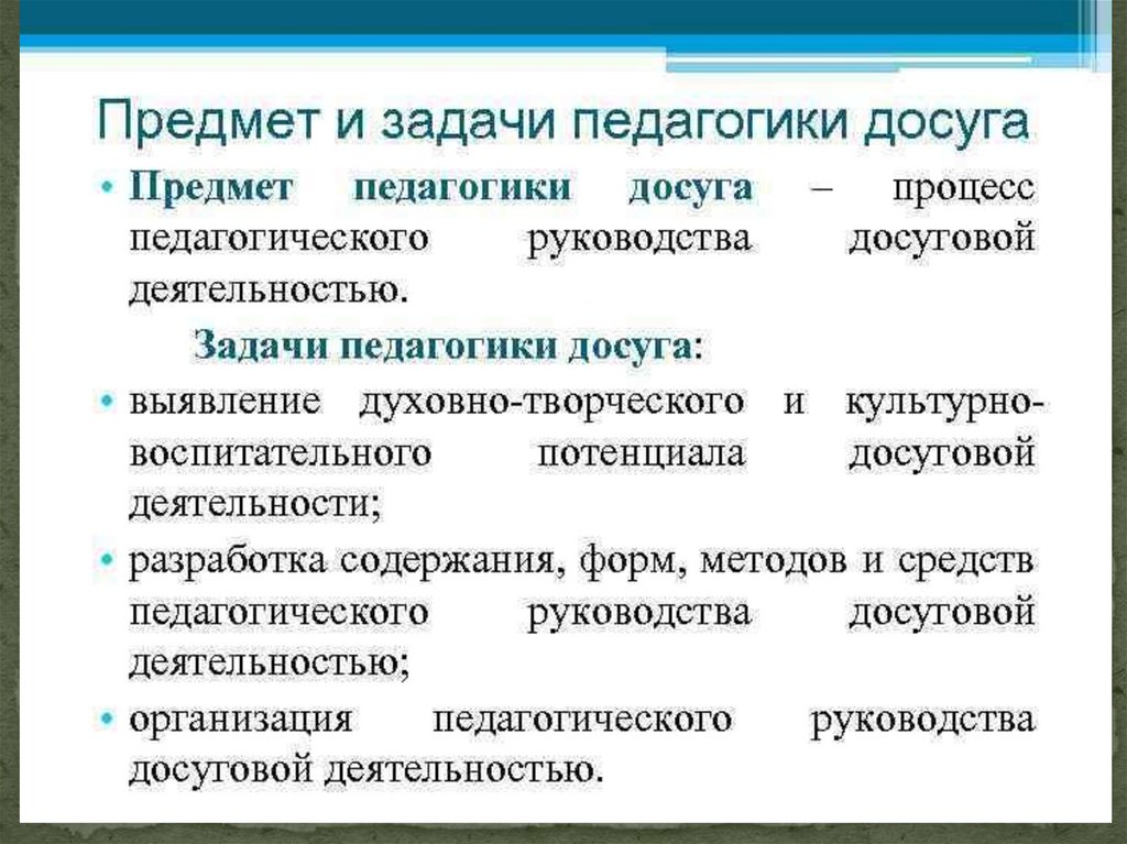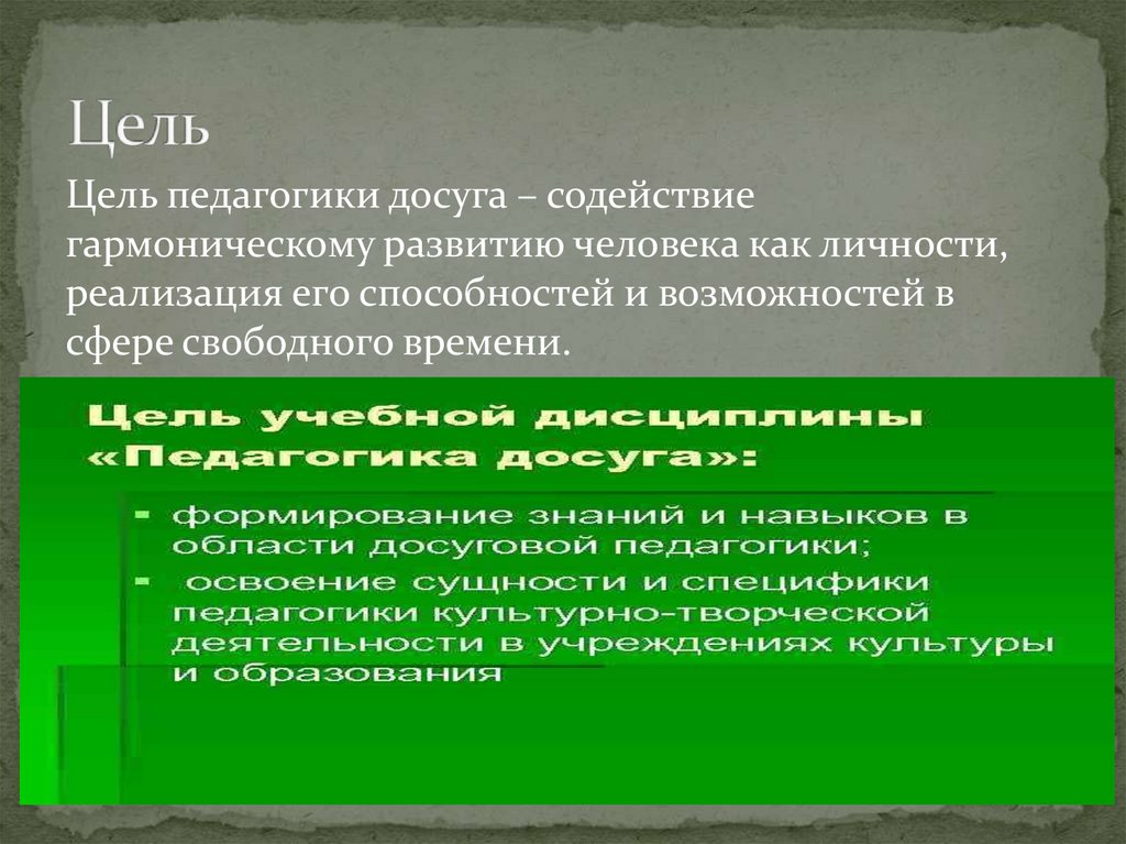 Цель педагогики досуга – содействиегармоническому развитию человека как личности,
