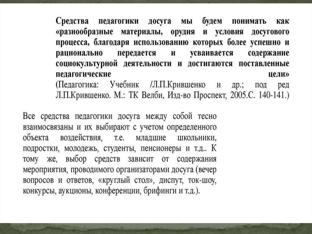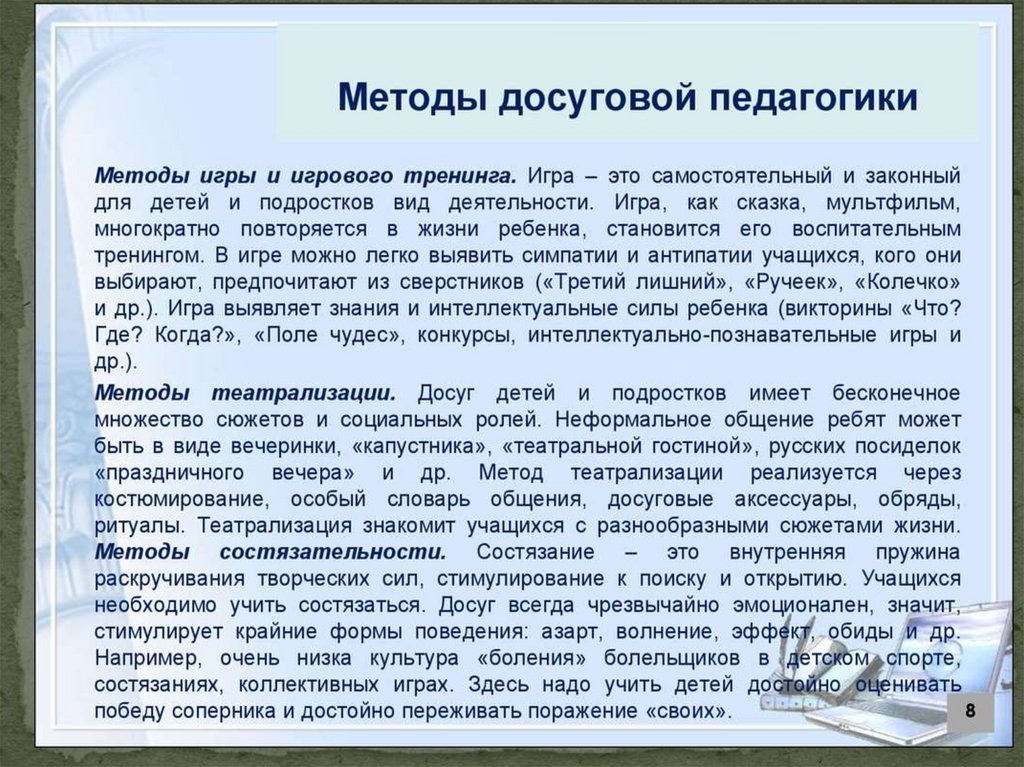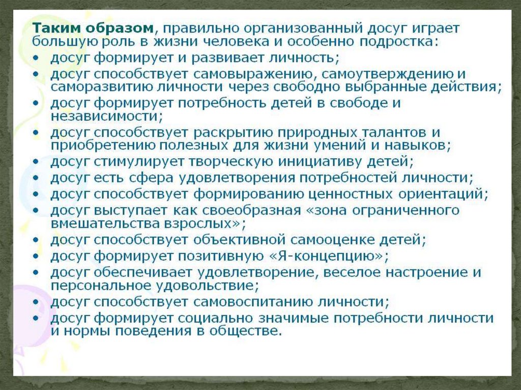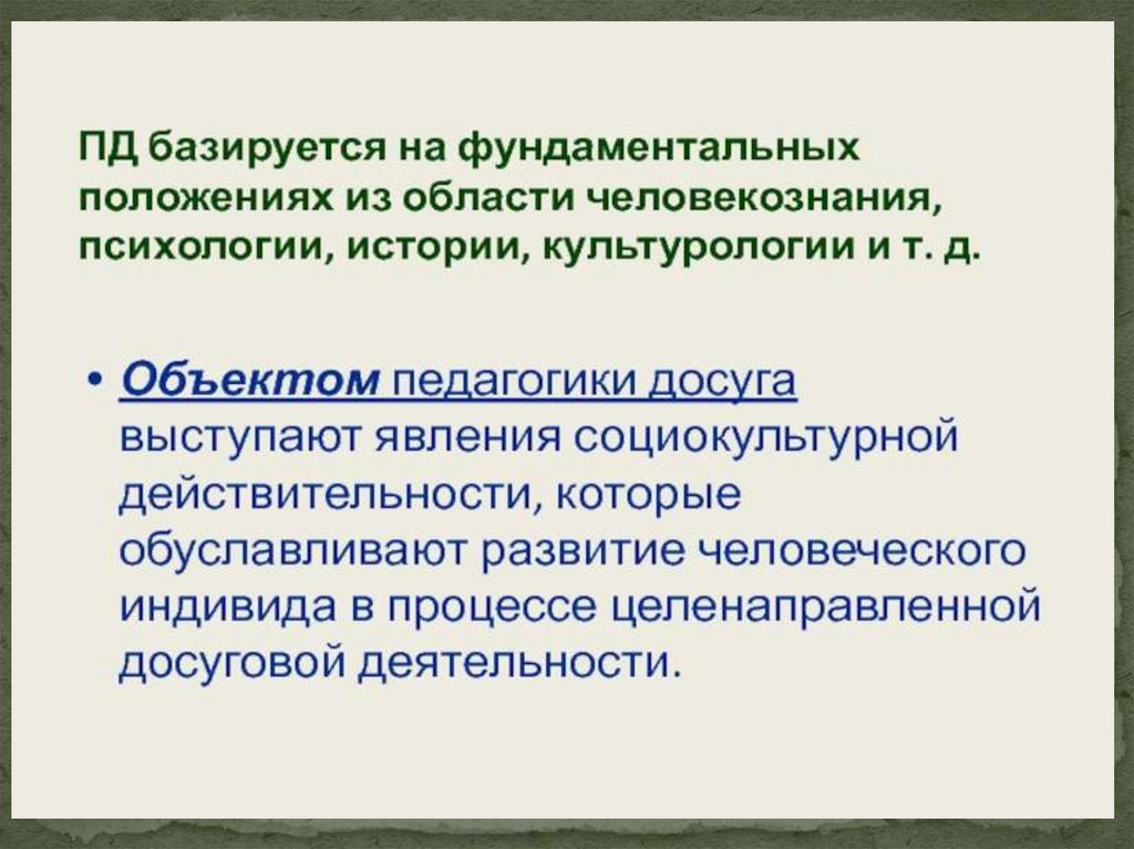 Цель педагогики досуга – содействиегармоническому развитию человека как личности,