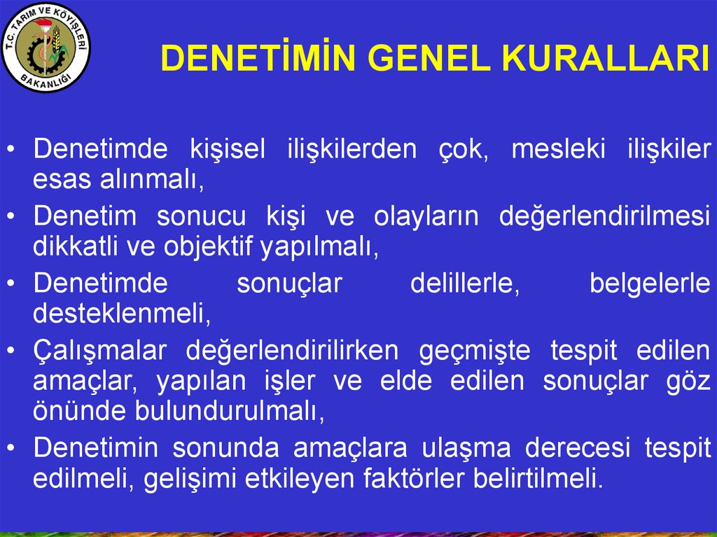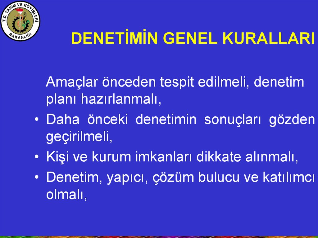 DENETİMİN GENEL KURALLARIAmaçlar önceden tespit edilmeli, denetim