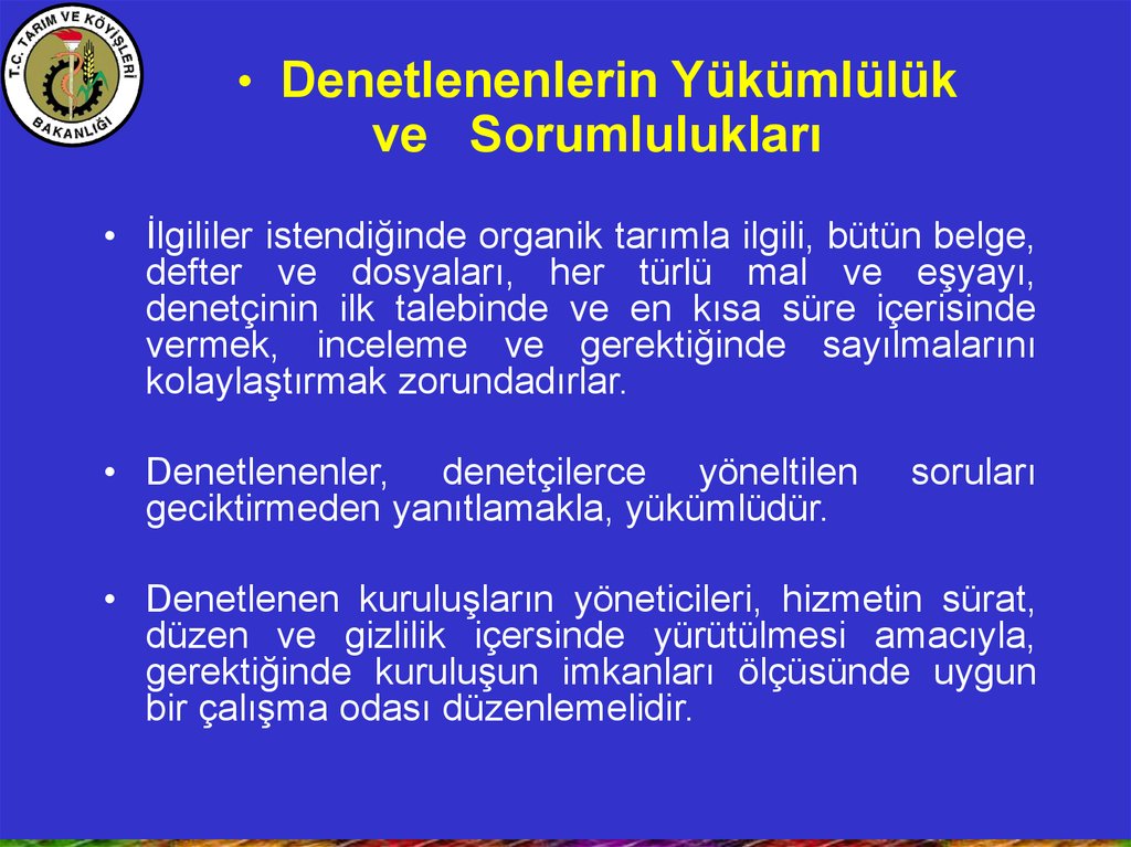 • Organik tarım faaliyetlerinin, bu Kanunauygun olarak yapılıp yapılmadığını tespit