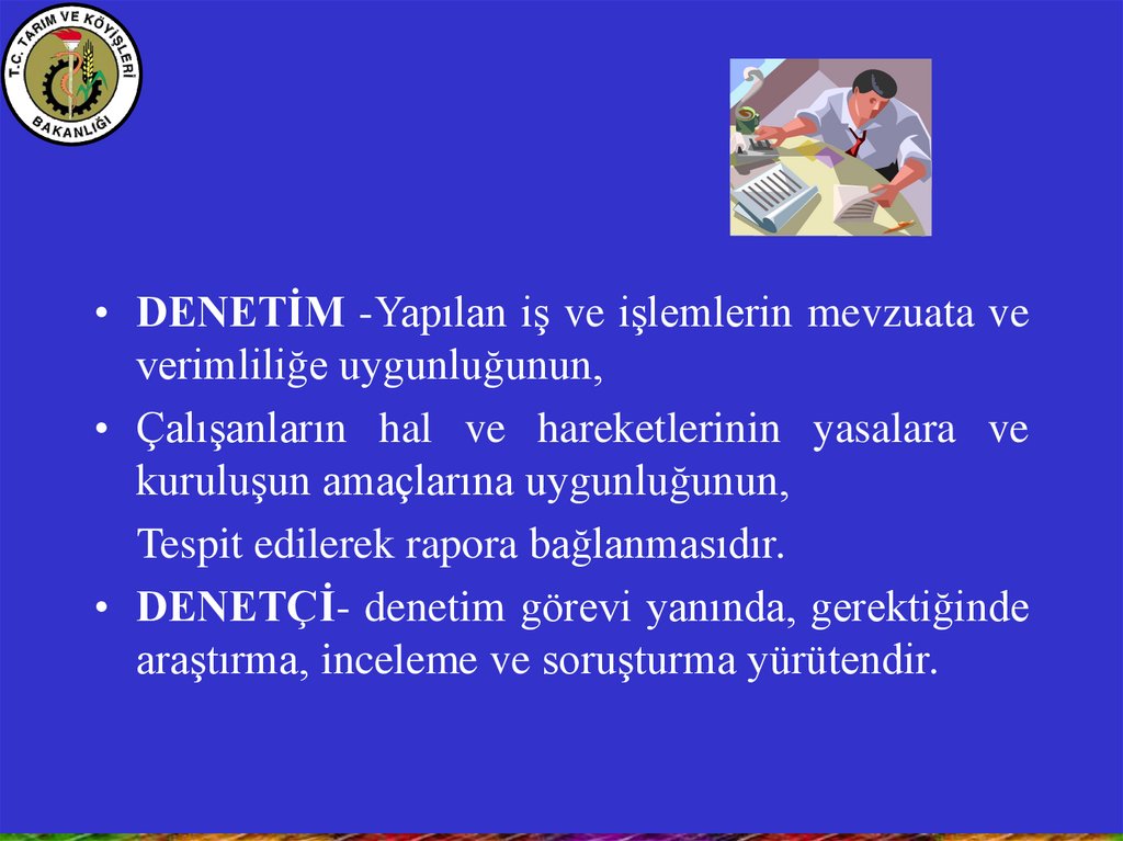 • DENETİM -Yapılan iş ve işlemlerin mevzuata veverimliliğe uygunluğunun,