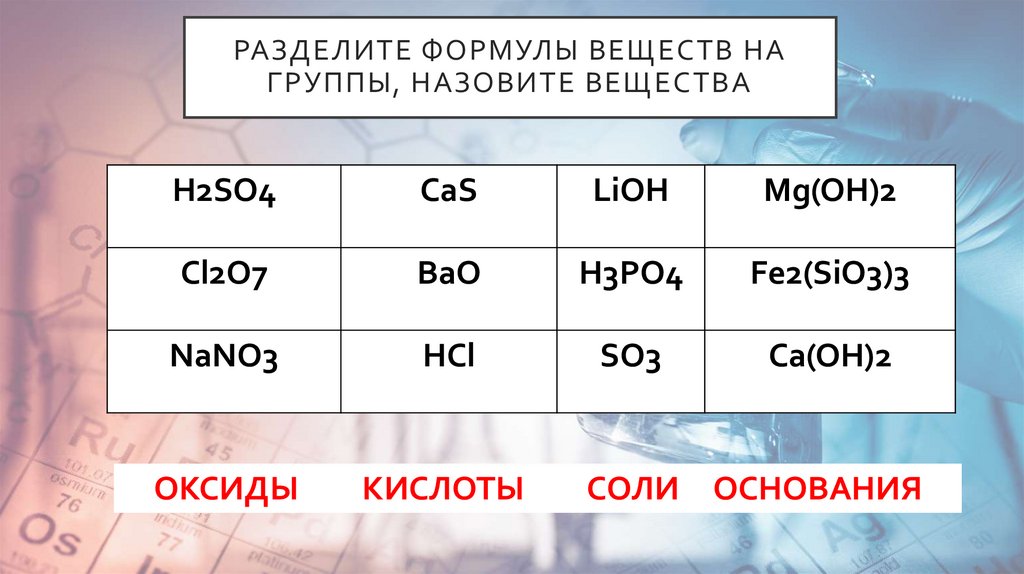 РАЗДЕЛИТЕ ФОРМУЛЫ ВЕЩЕСТВ НАГРУППЫ, НАЗОВИТЕ ВЕЩЕСТВА