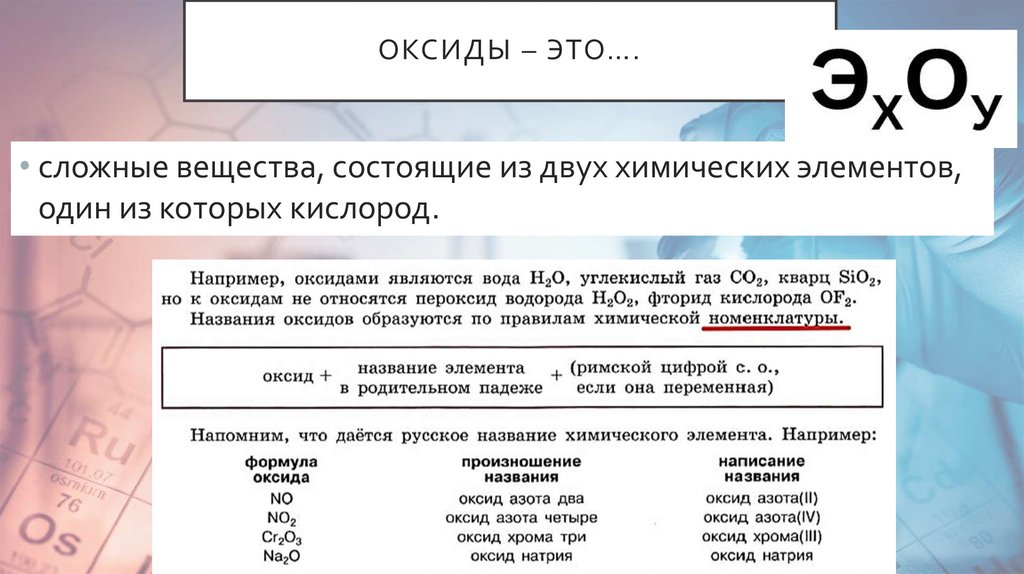 ОКСИДЫ – ЭТО….• сложные вещества, состоящие из двух химических элементов,