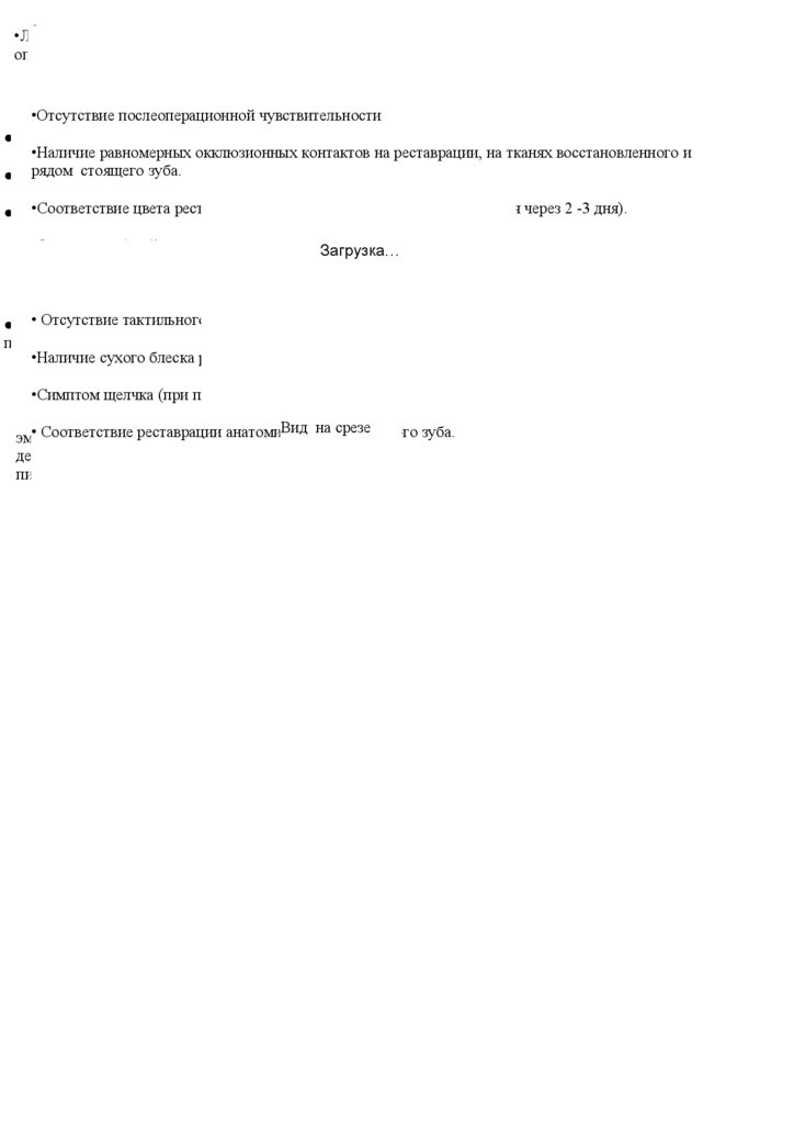 •Наличие равномерных окклюзионных контактов на реставрации, на тканях восстановленного и
