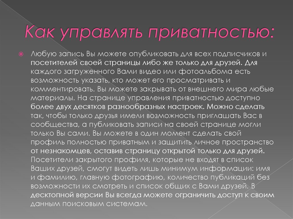1. Как управлять приватностью2. Приватность