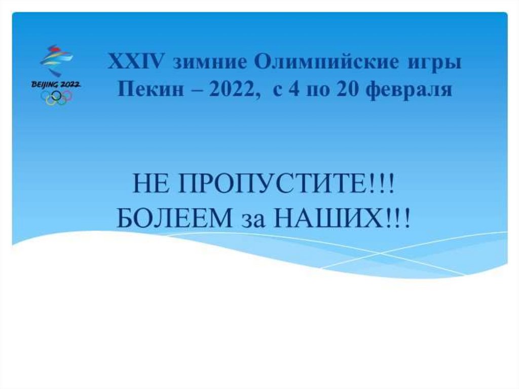 XXIV Зимние Олимпийские игры 2022 с 4 по 20 февраля в Пекине