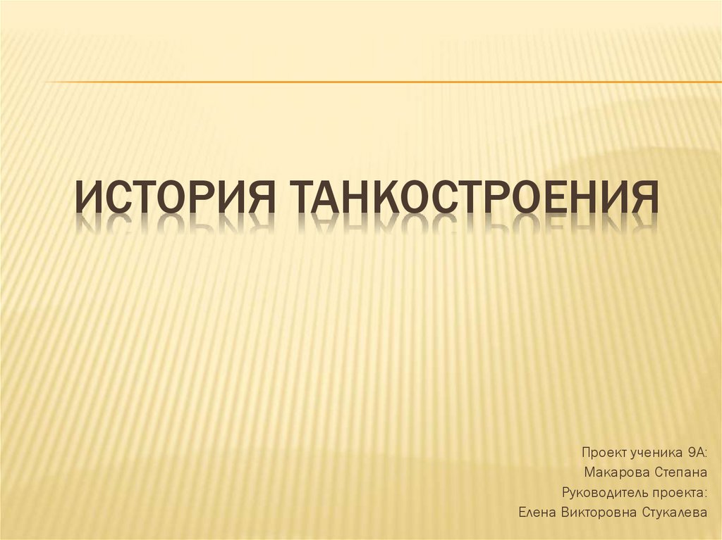ИСТОРИЯ ТАНКОСТРОЕНИЯПроект ученика 9А: