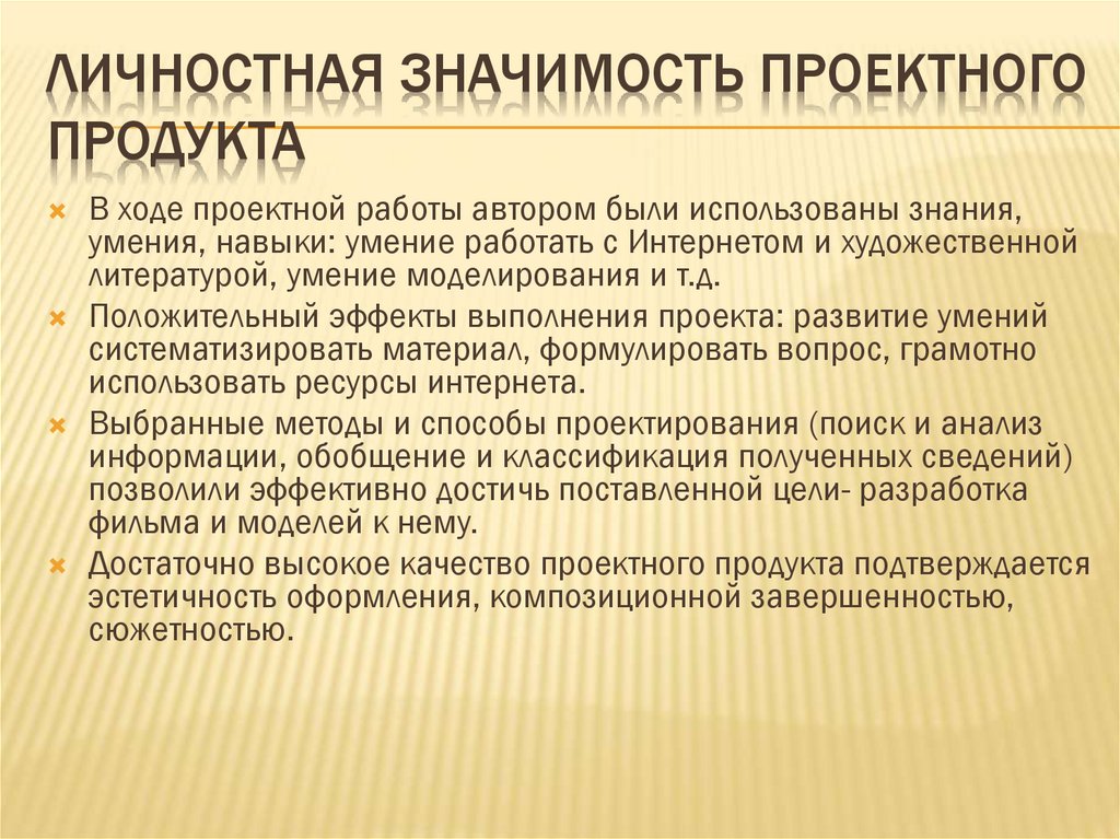 ЛИЧНОСТНАЯ ЗНАЧИМОСТЬ ПРОЕКТНОГОПРОДУКТА