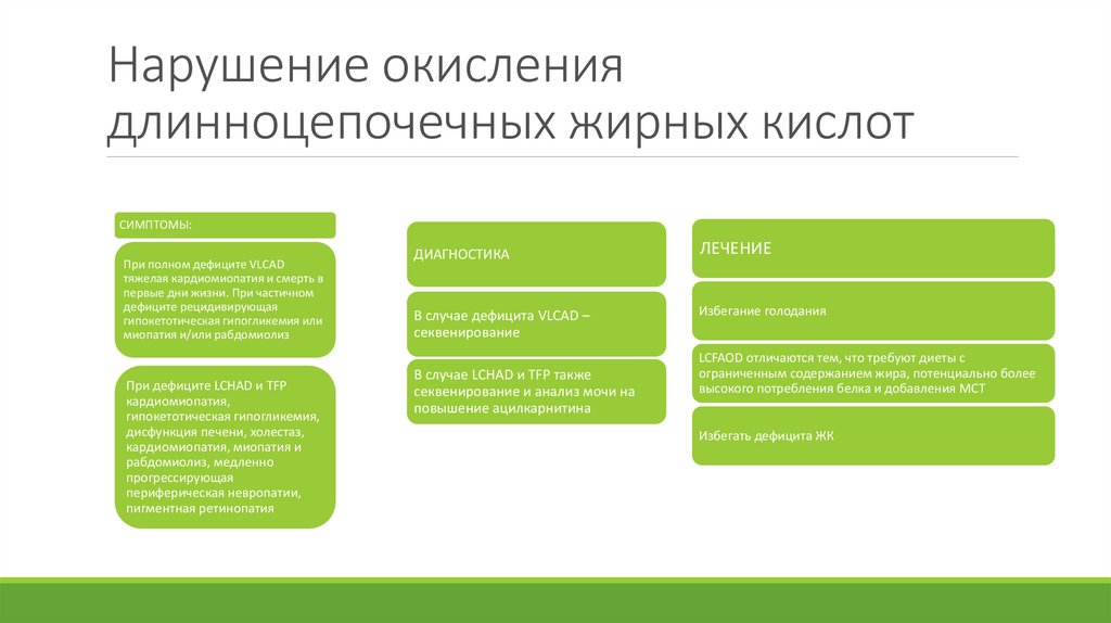 Нарушение окислениядлинноцепочечных жирных кислот