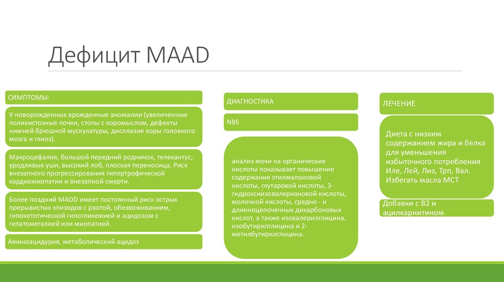 Дефицит MAADСИМПТОМЫ:
