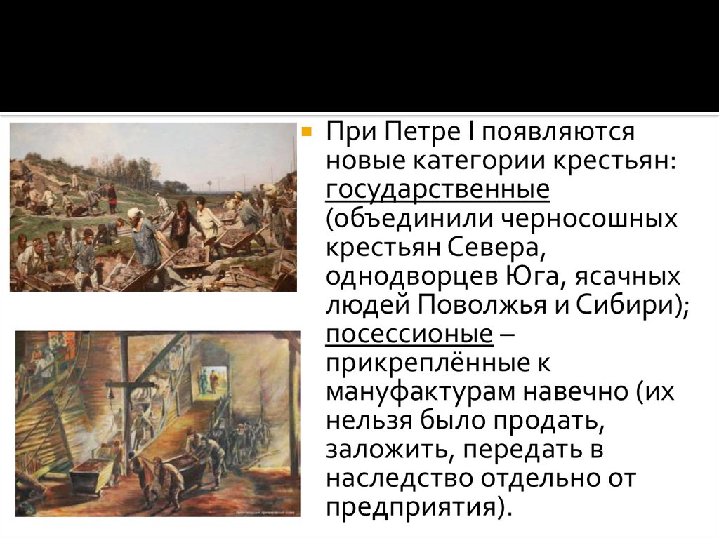 При Петре I появляютсяновые категории крестьян: