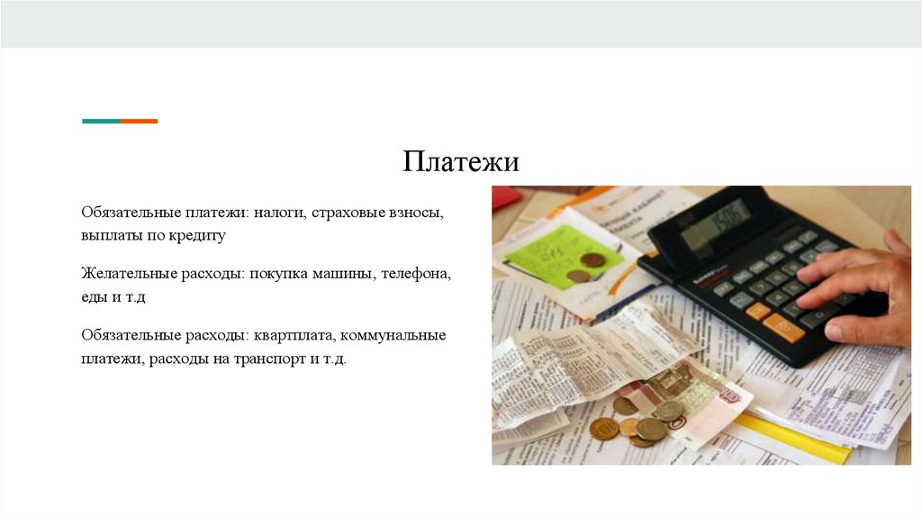 ПлатежиОбязательные платежи: налоги, страховые взносы,