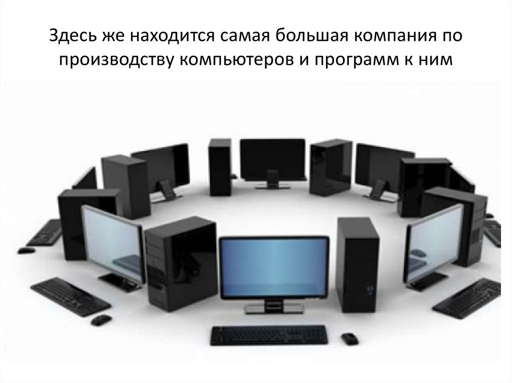 Здесь же находится самая большая компания попроизводству компьютеров и программ к ним