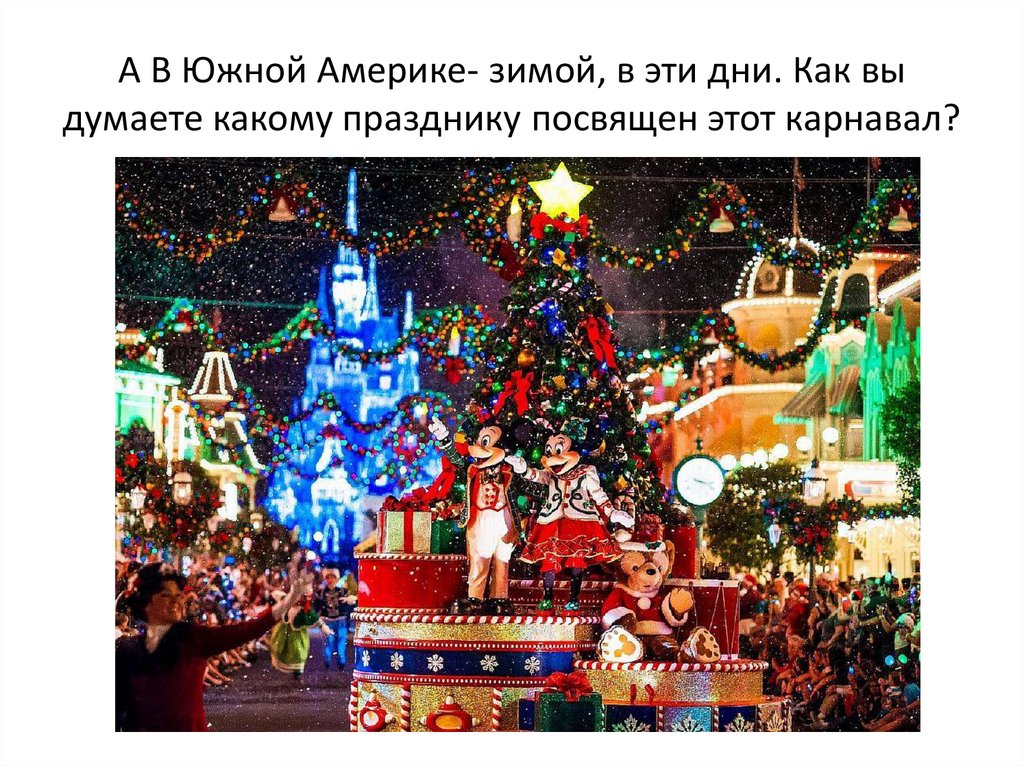 А В Южной Америке- зимой, в эти дни. Как выдумаете какому празднику посвящен этот карнавал?