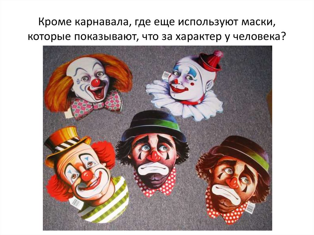 Кроме карнавала, где еще используют маски,которые показывают, что за характер у человека?