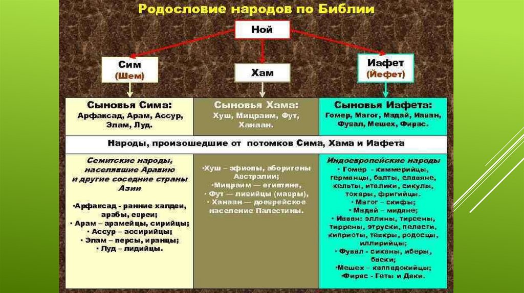 НОЙ, ЕГО СЫНОВЬЯ — СИМ, ХАМ ИИАФЕТ, СТАЛИ РОДОНАЧАЛЬНИКАМИ