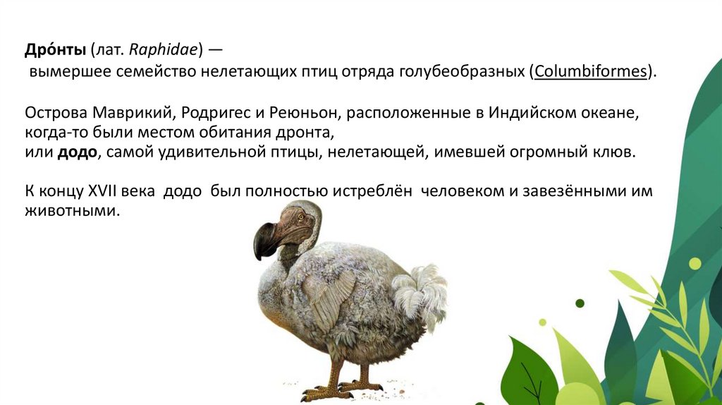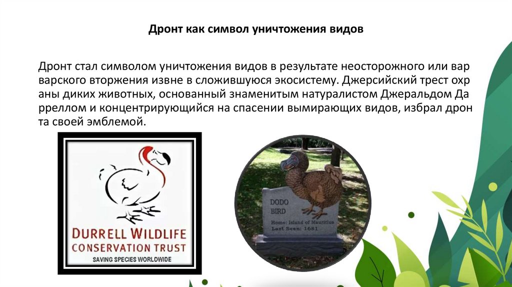 Дронт как символ уничтожения видовДронт стал символом уничтожения видов в результате неосторожного или вар