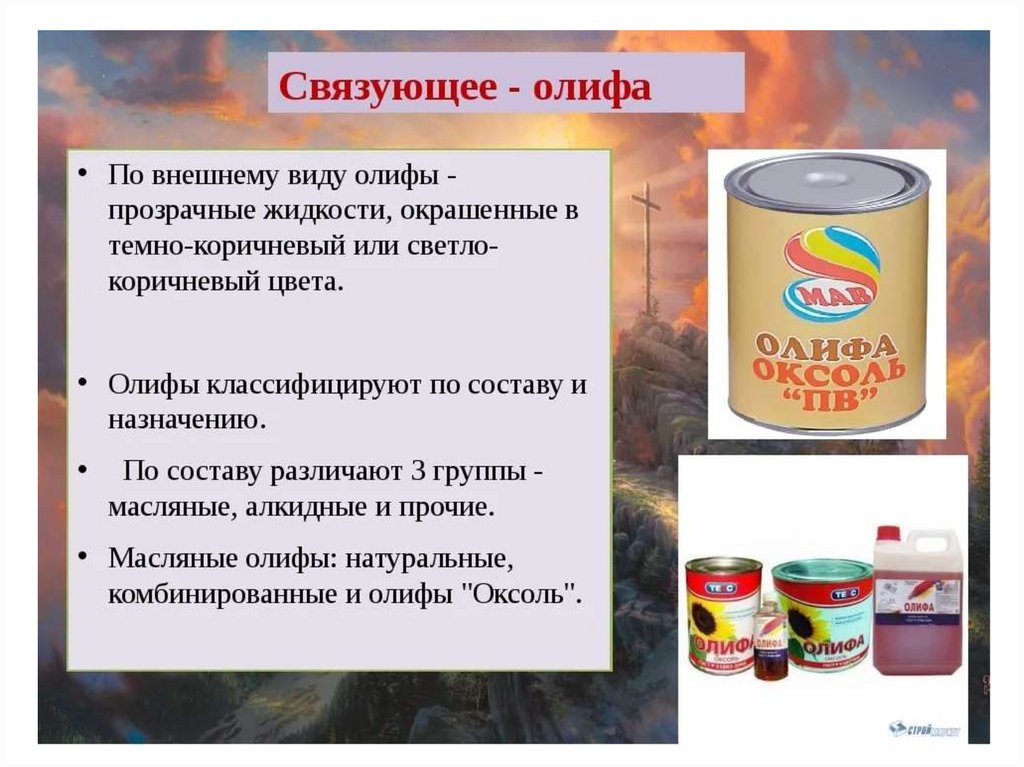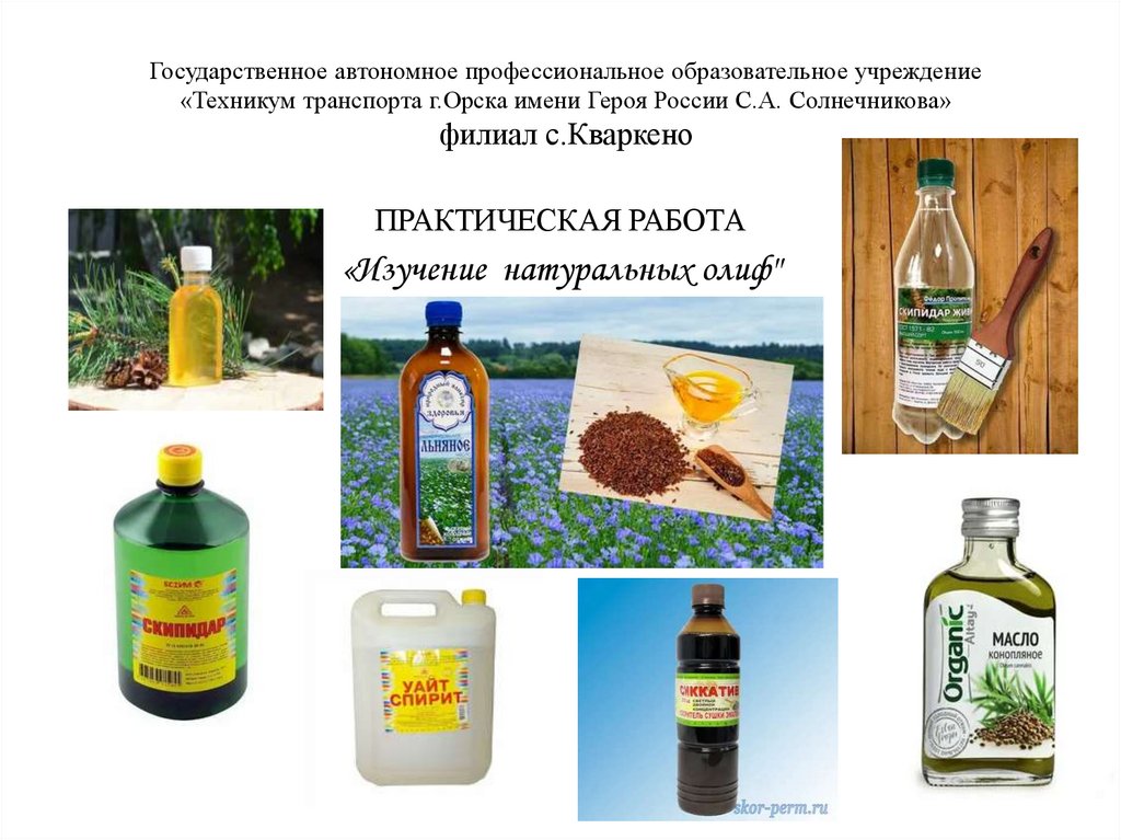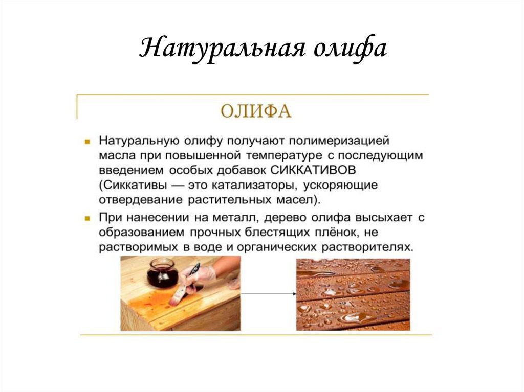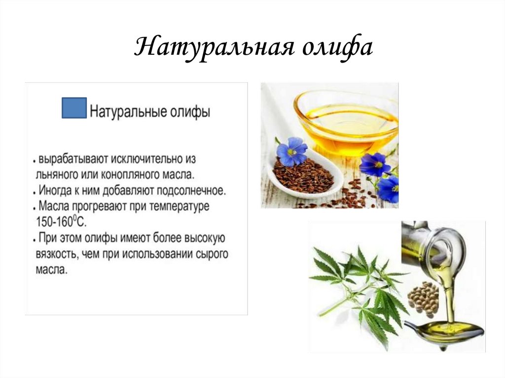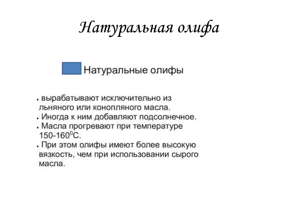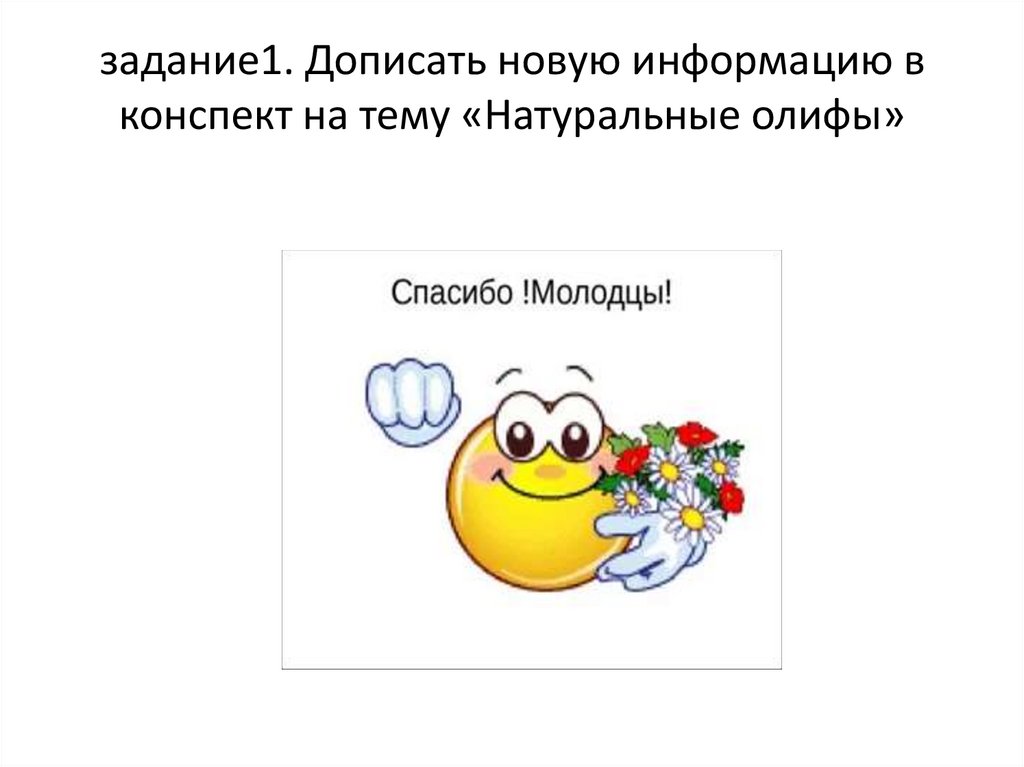 задание1. Дописать новую информацию вконспект на тему «Натуральные олифы»