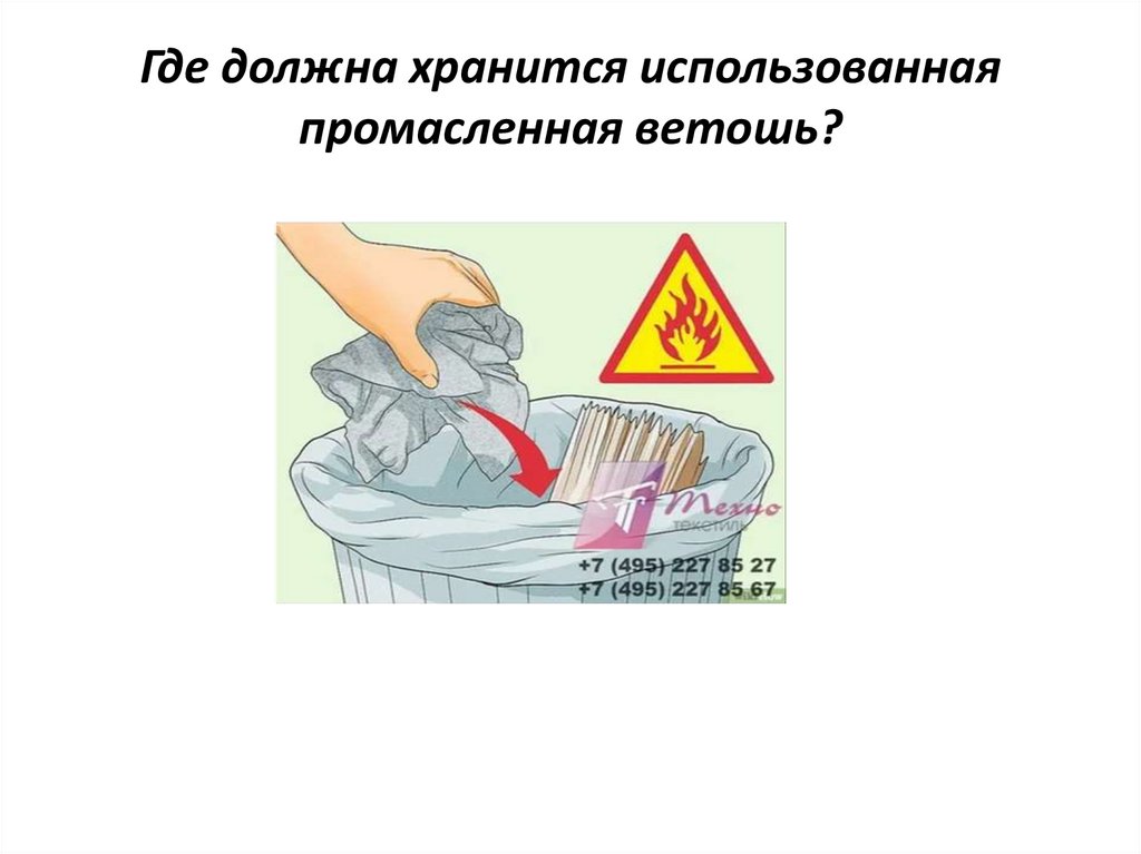 ветоши, опасность возгорания и нанесения вреда экологии,