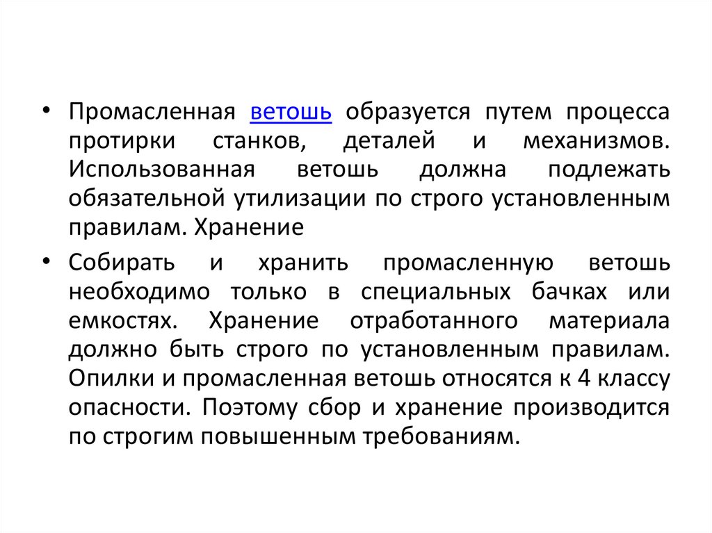 • Промасленная ветошь образуется путем процессапротирки станков, деталей и механизмов.