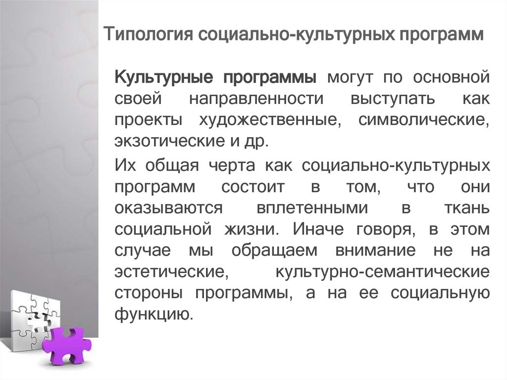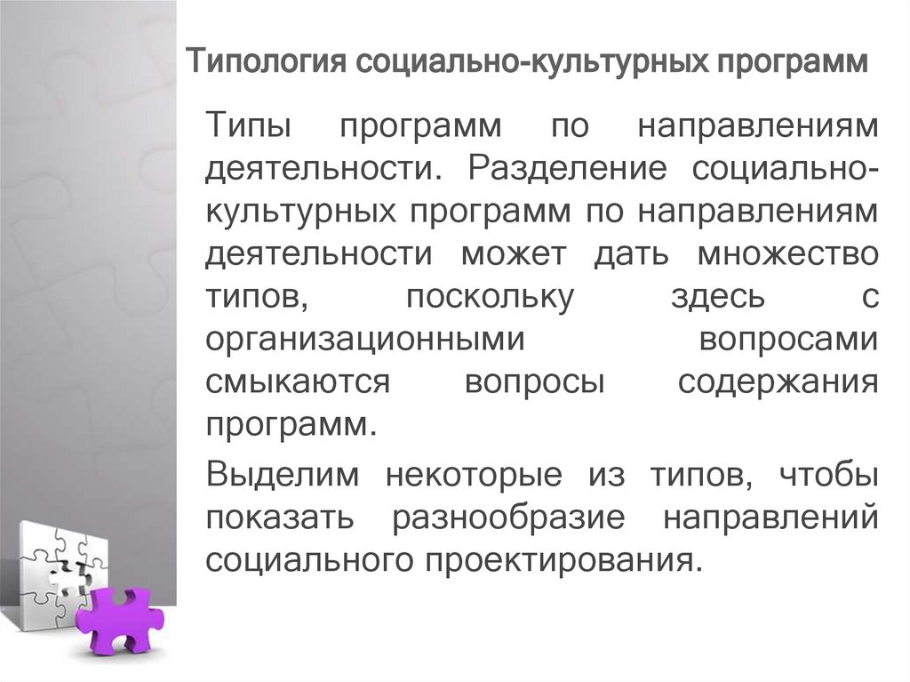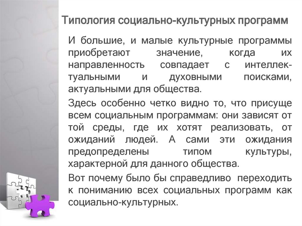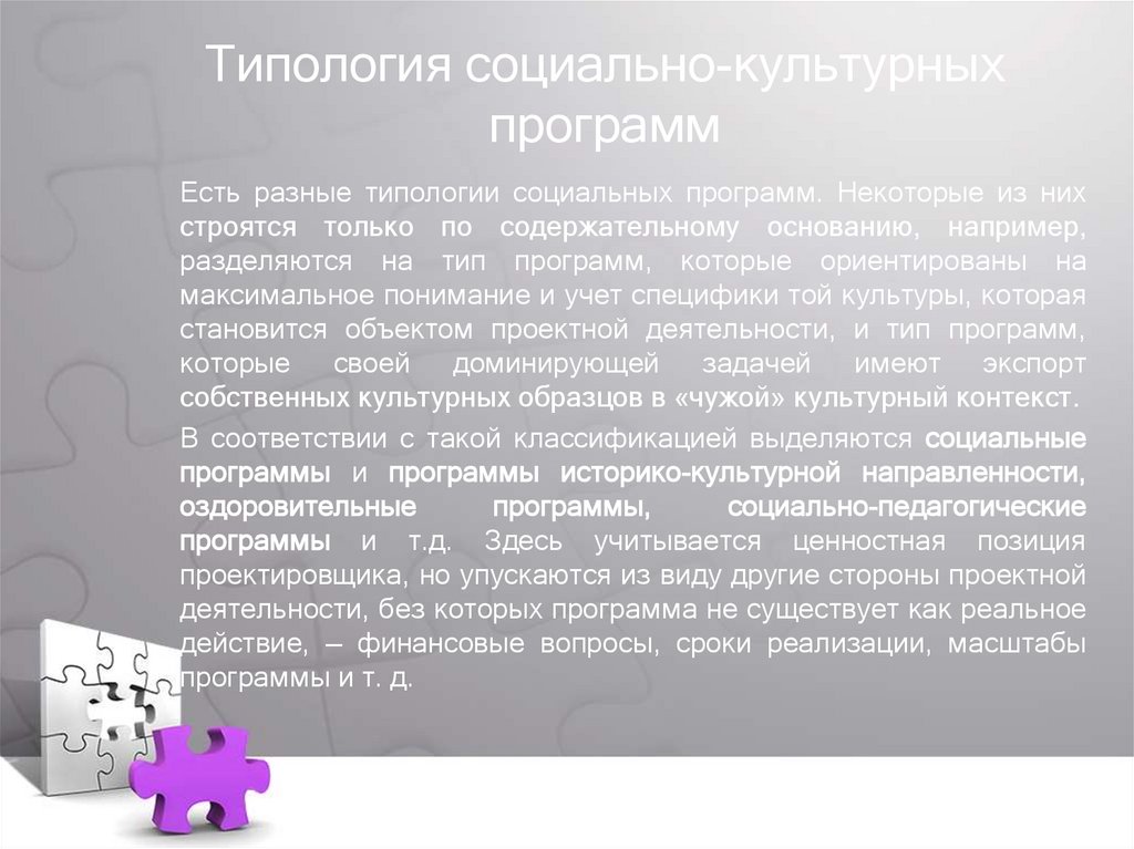 Типология социально-культурныхпрограмм