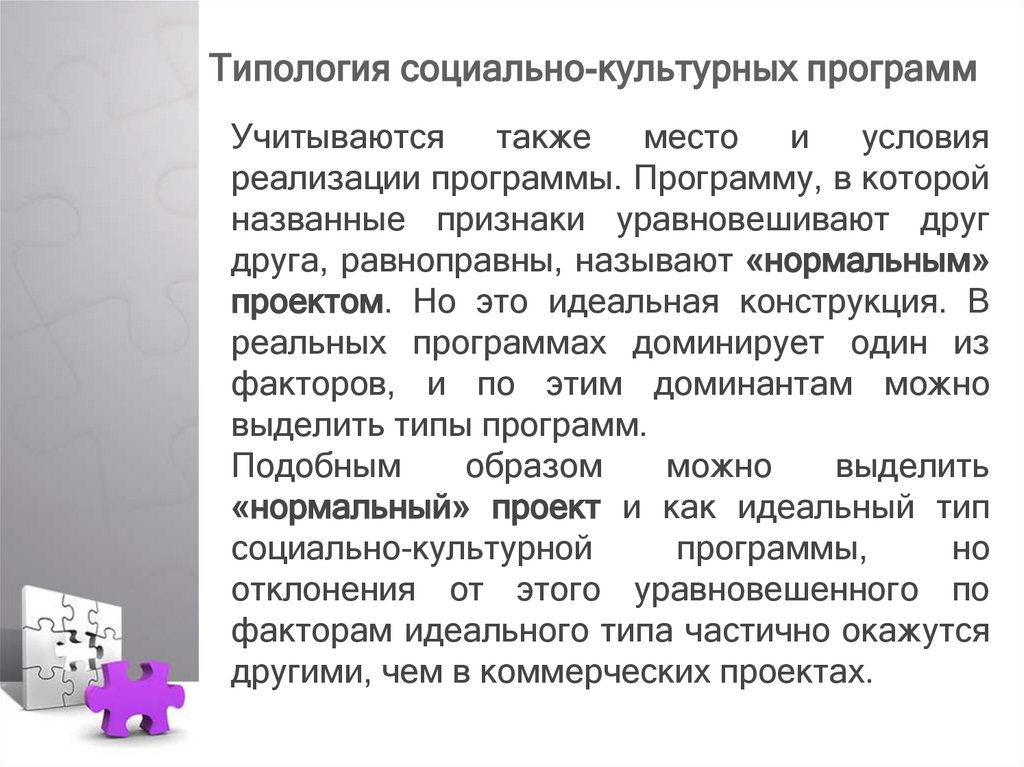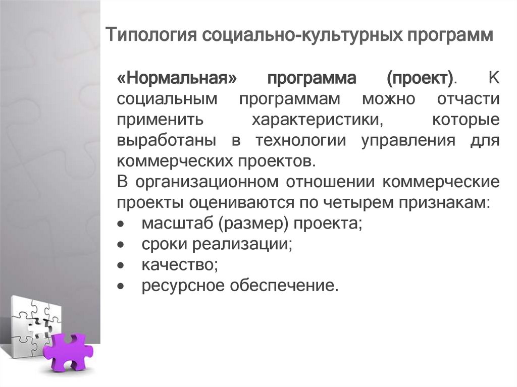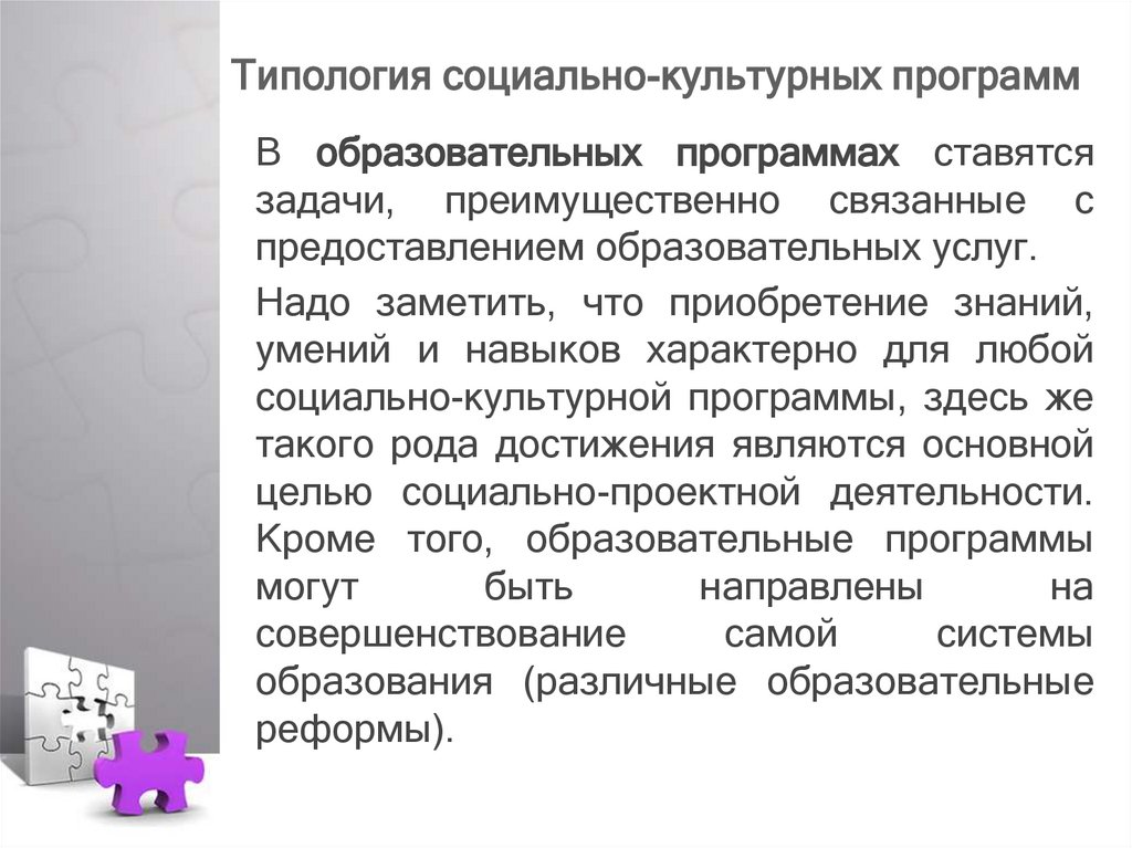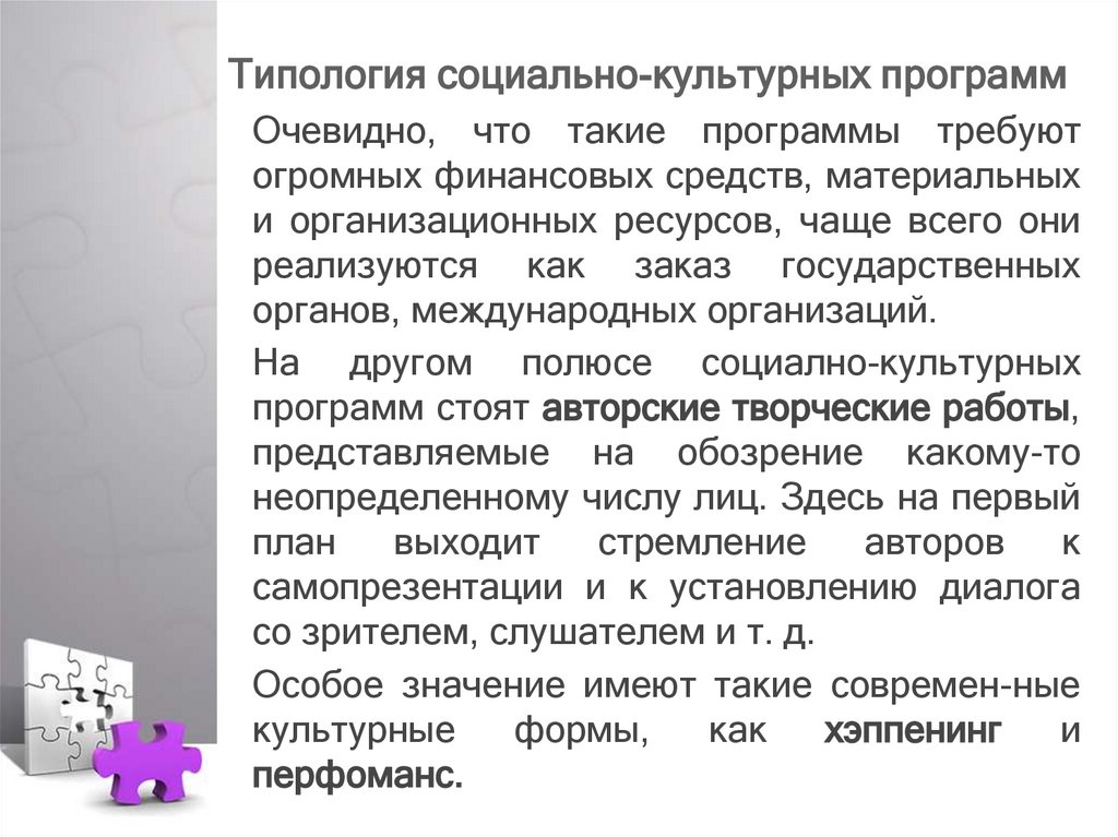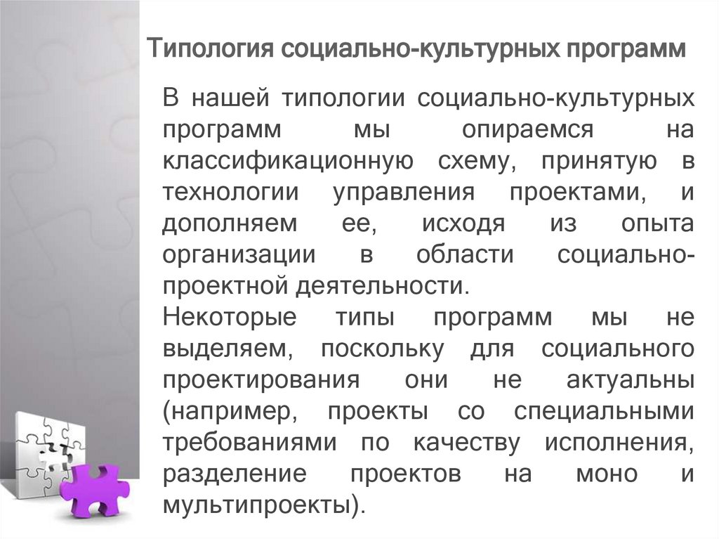 Типология социально-культурныхпрограмм