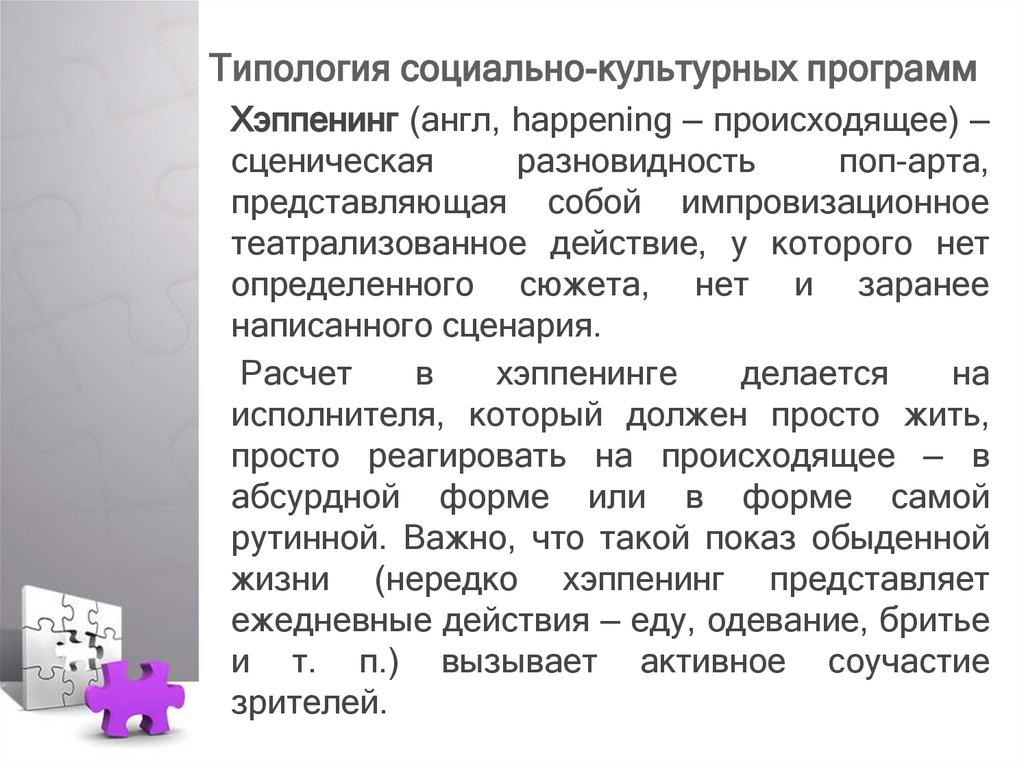 Типология социально-культурных программПерфоманс