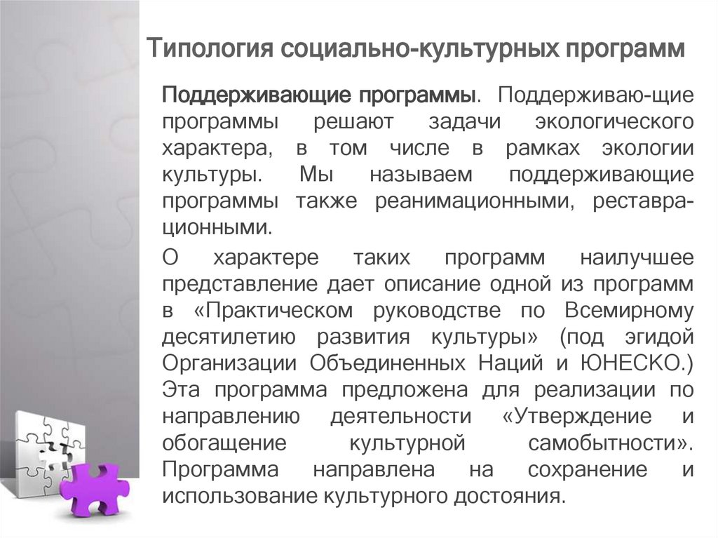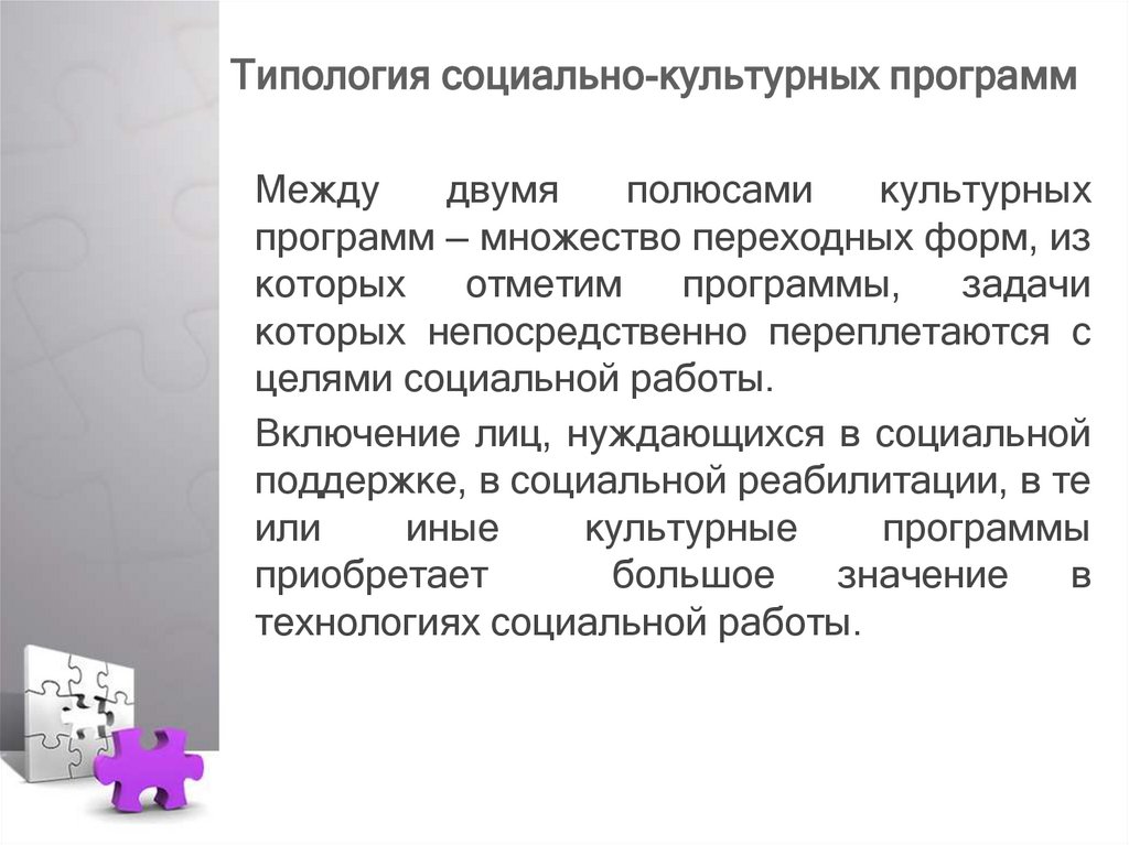 Типология социальнокультурных программ