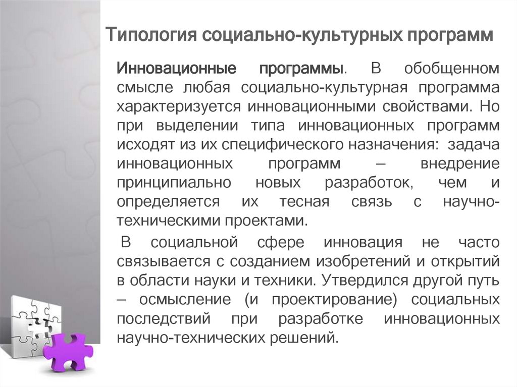 Типология социально-культурных программИнновационные программы. В обобщенном