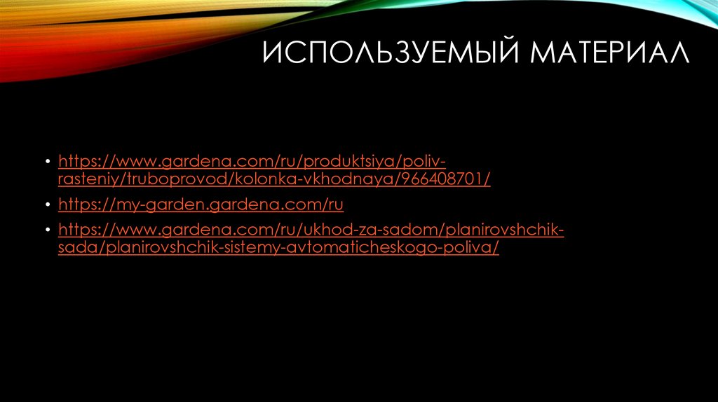 ИСПОЛЬЗУЕМЫЙ МАТЕРИАЛ• https://www.gardena.com/ru/produktsiya/polivrasteniy/truboprovod/kolonka-vkhodnaya/966408701/