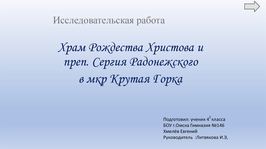 Исследовательская работа Храм Рождества Христова и преп. Сергия Радонежского в мкр Крутая Горка