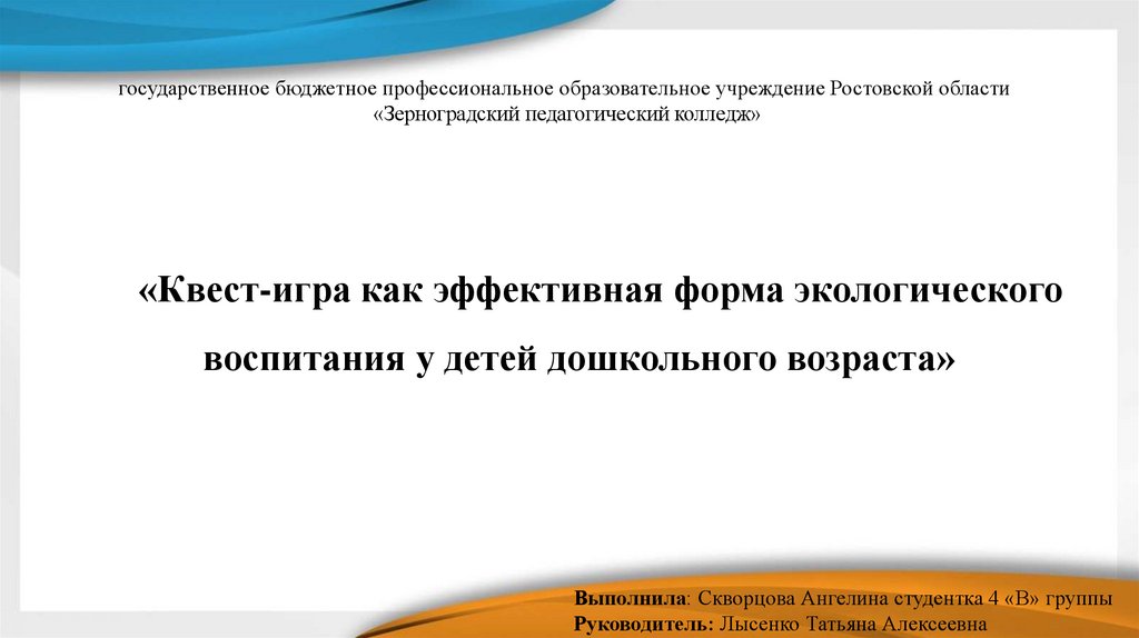 государственное бюджетное профессиональное образовательное учреждение Ростовской области«Зерноградский педагогический колледж»