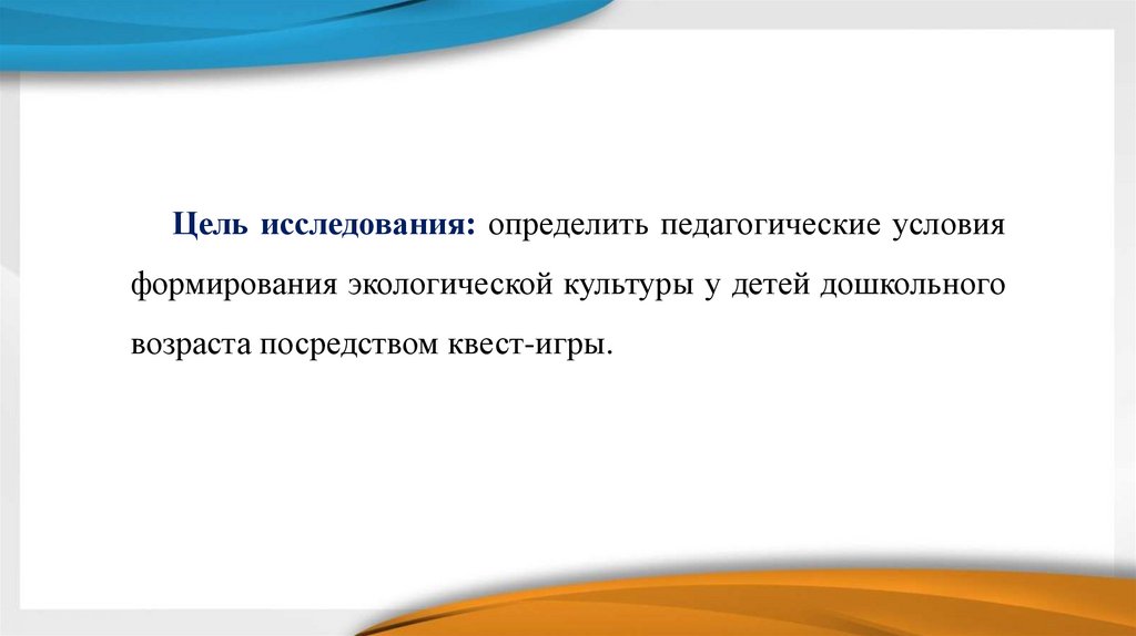 Цель исследования: определить педагогические условияформирования экологической культуры у детей дошкольного