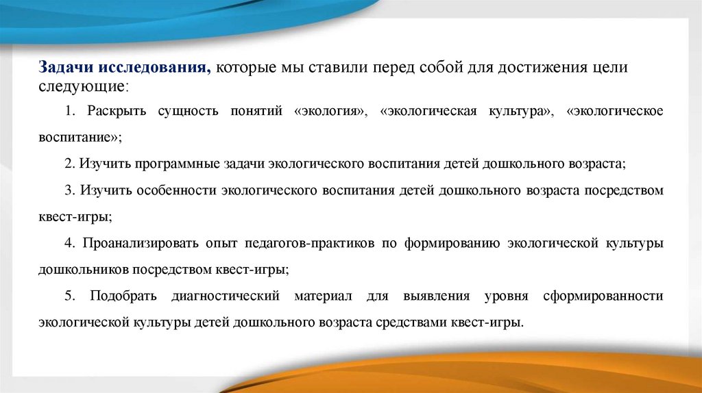 Задачи исследования, которые мы ставили перед собой для достижения целиследующие: