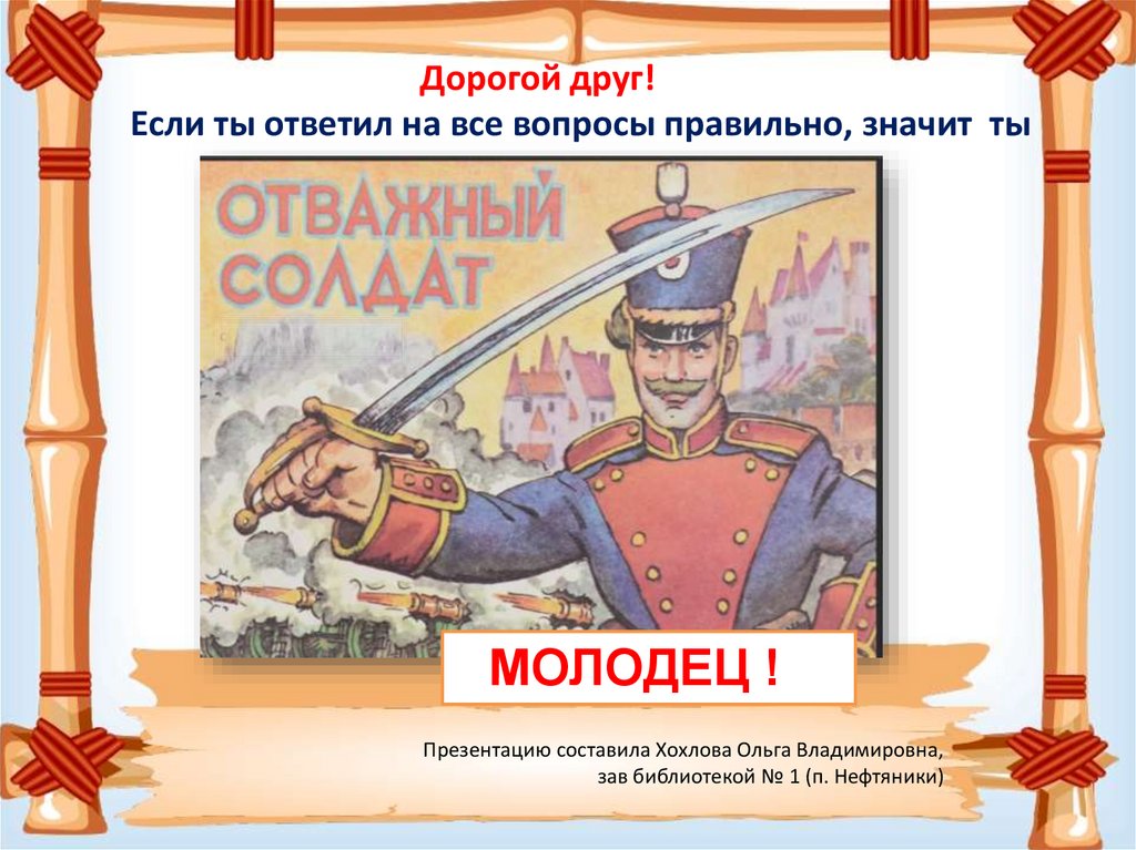 Дорогой друг!Если ты ответил на все вопросы правильно, значит ты