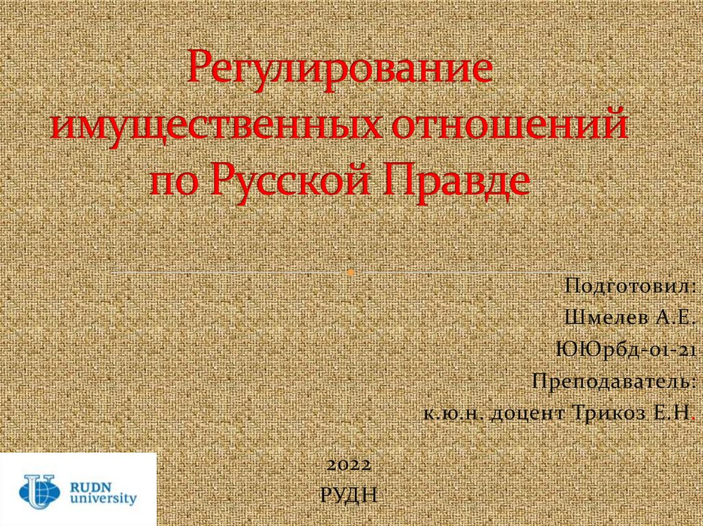 Регулирование имущественных отношений по Русской Правде