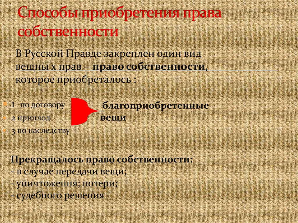 В Русской Правде закреплен один видвещны х прав – право собственности,