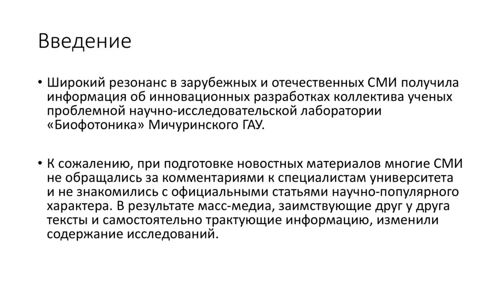 Введение• Широкий резонанс в зарубежных и отечественных СМИ получила